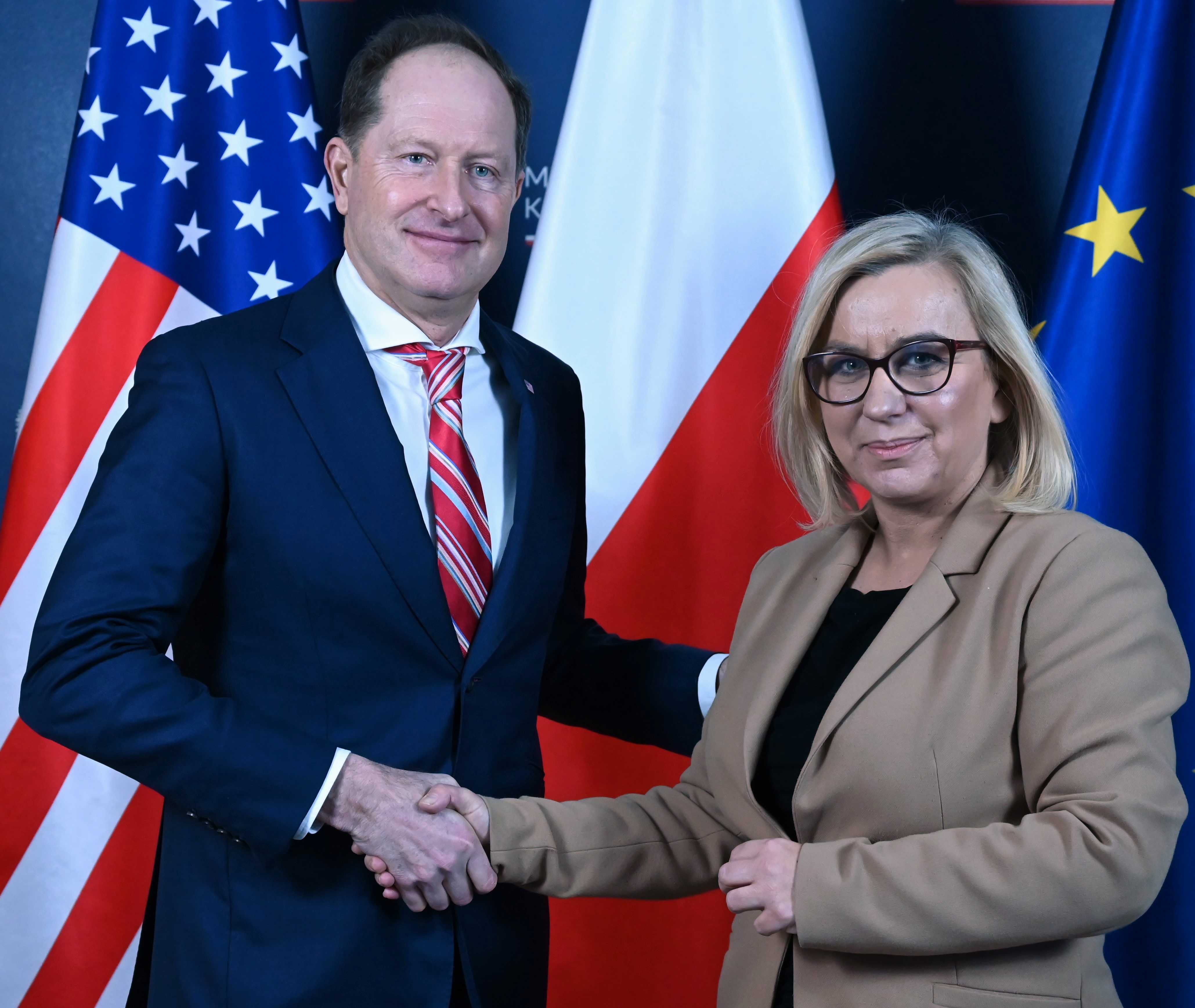 Minister klimatu i środowiska Paulina Hennig-Kloska spotkała się z Ambasadorem Stanów Zjednoczonych Ameryki w Polsce Markiem Brzezińskim. W trakcie spotkania, które odbyło się 19 stycznia 2024 r., dyskutowano m.in. o współpracy polsko-amerykańskiej na rzecz rozwoju energetyki jądrowej w Polsce.
