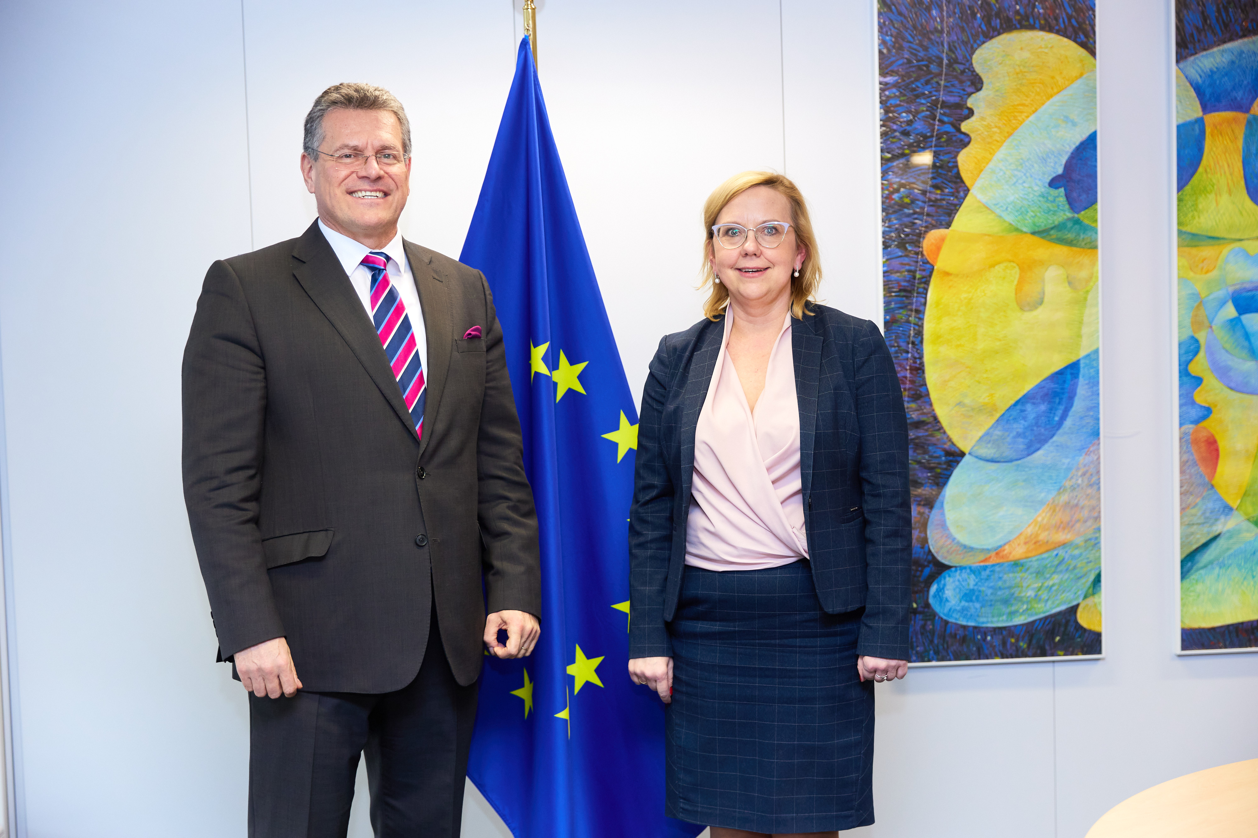 Inwestycje w energetykę oraz nowoprojektowany Europejski Fundusz Suwerenności to główne tematy rozmów minister klimatu i środowiska Anny Moskwy z wiceprzewodniczącym Komisji Europejskiej odpowiedzialnym za stosunki międzyinstytucjonalne i prognozowanie Marošem Šefčovičem oraz komisarzem UE ds. rynku wewnętrznego Thierrym Bretonem. W spotkaniach, które odbyły się 19 stycznia 2023 r. w Brukseli udział wziął także wiceminister Adam Guibourgé-Czetwertyński.