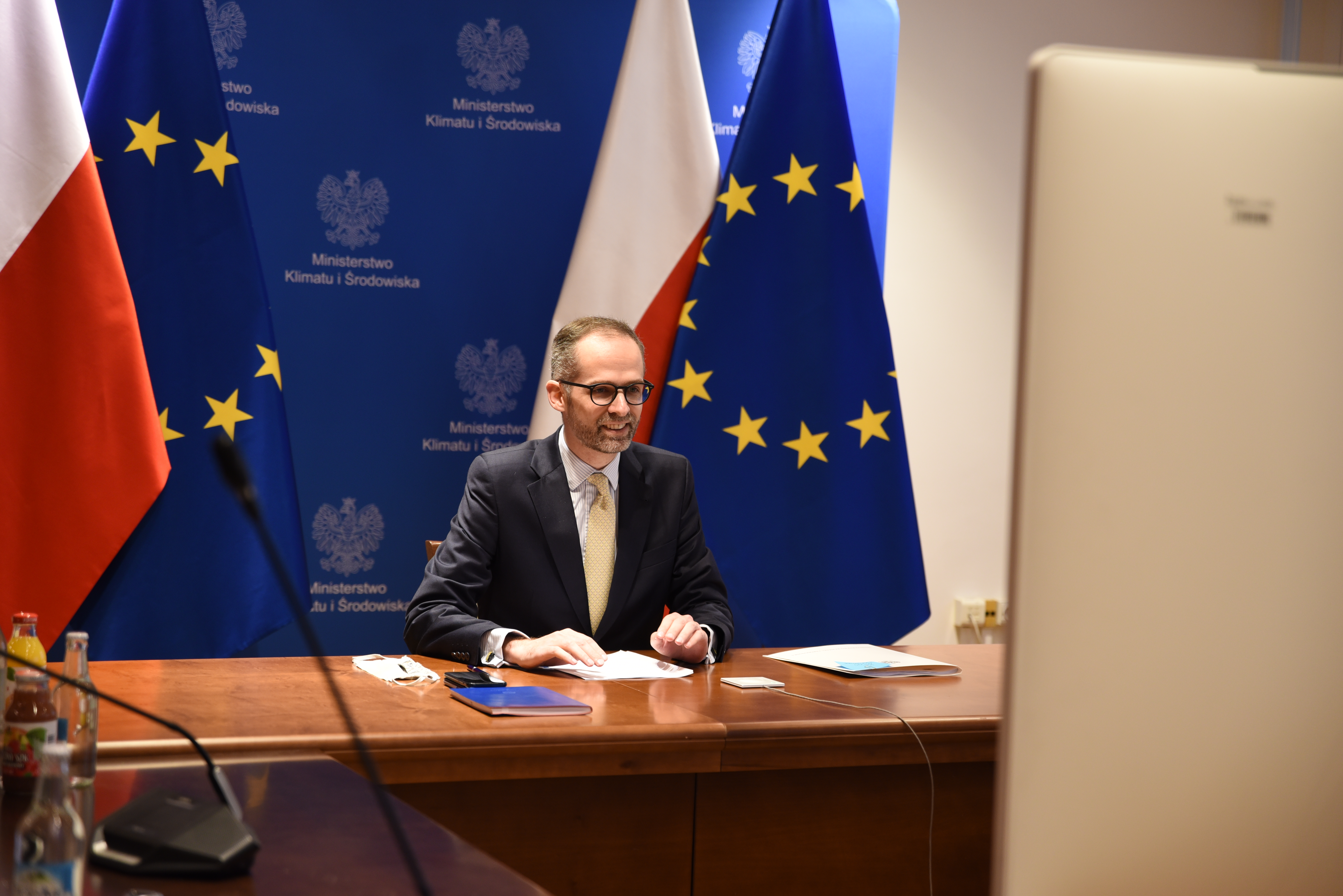 Przygotowanie do grudniowego posiedzenia Rady Europejskiej dotyczącego podwyższenia celu redukcyjnego UE do roku 2030, było głównym tematem spotkania wiceministra Adama Guibourgé-Czetwertyńskiego z przedstawicielami Komisji Europejskiej, które odbyło się 17 listopada 2020 r.