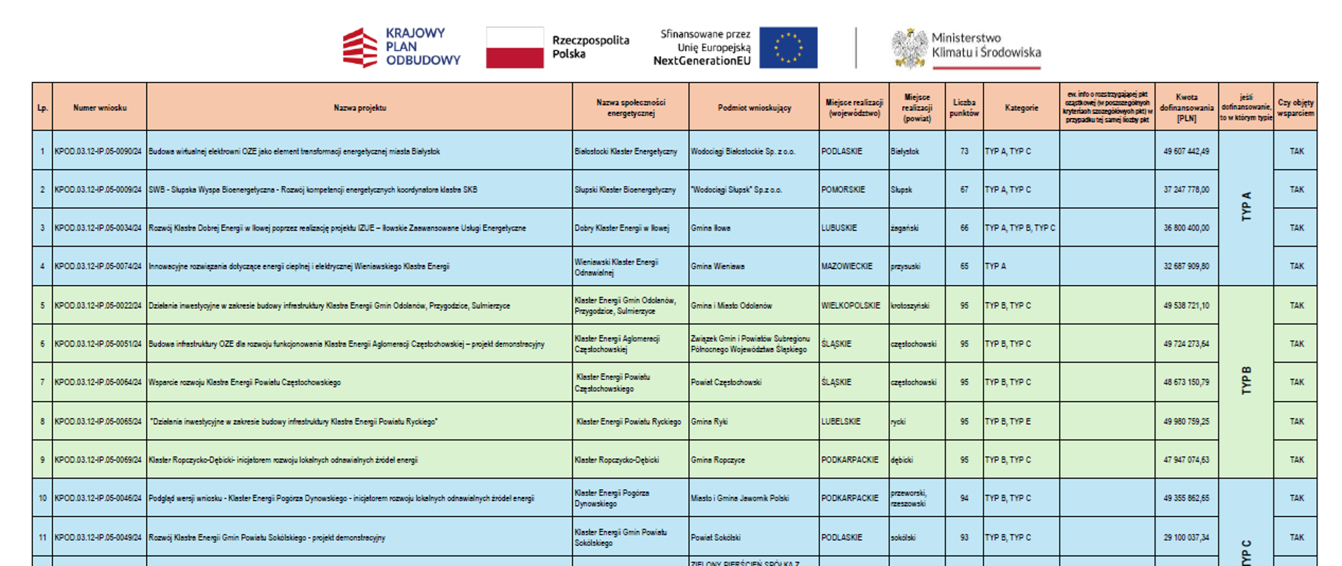 Wsparcie inwestycyjne obejmie istniejące już, najbardziej zaawansowane/rokujące społeczności energetyczne, realizujące wdrożenia zaawansowanych usług energetycznych.