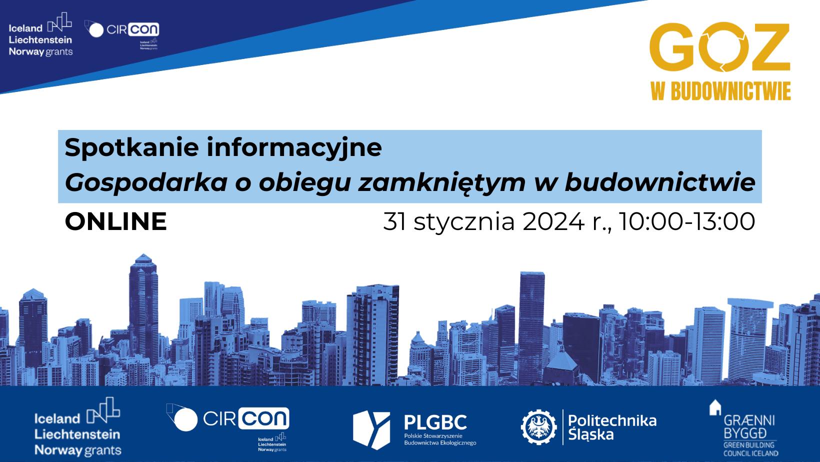 Wydarzenie realizowane jest w ramach projektu CIRCON pt. „Gospodarka o obiegu zamkniętym w budownictwie: projektowanie budynków cyrkularnych”, wdrażanego w Programie klimatycznym EOG- zajrzyj do opisu projektu dostępnego w naszej Bazie projektów Programu po więcej informacji.