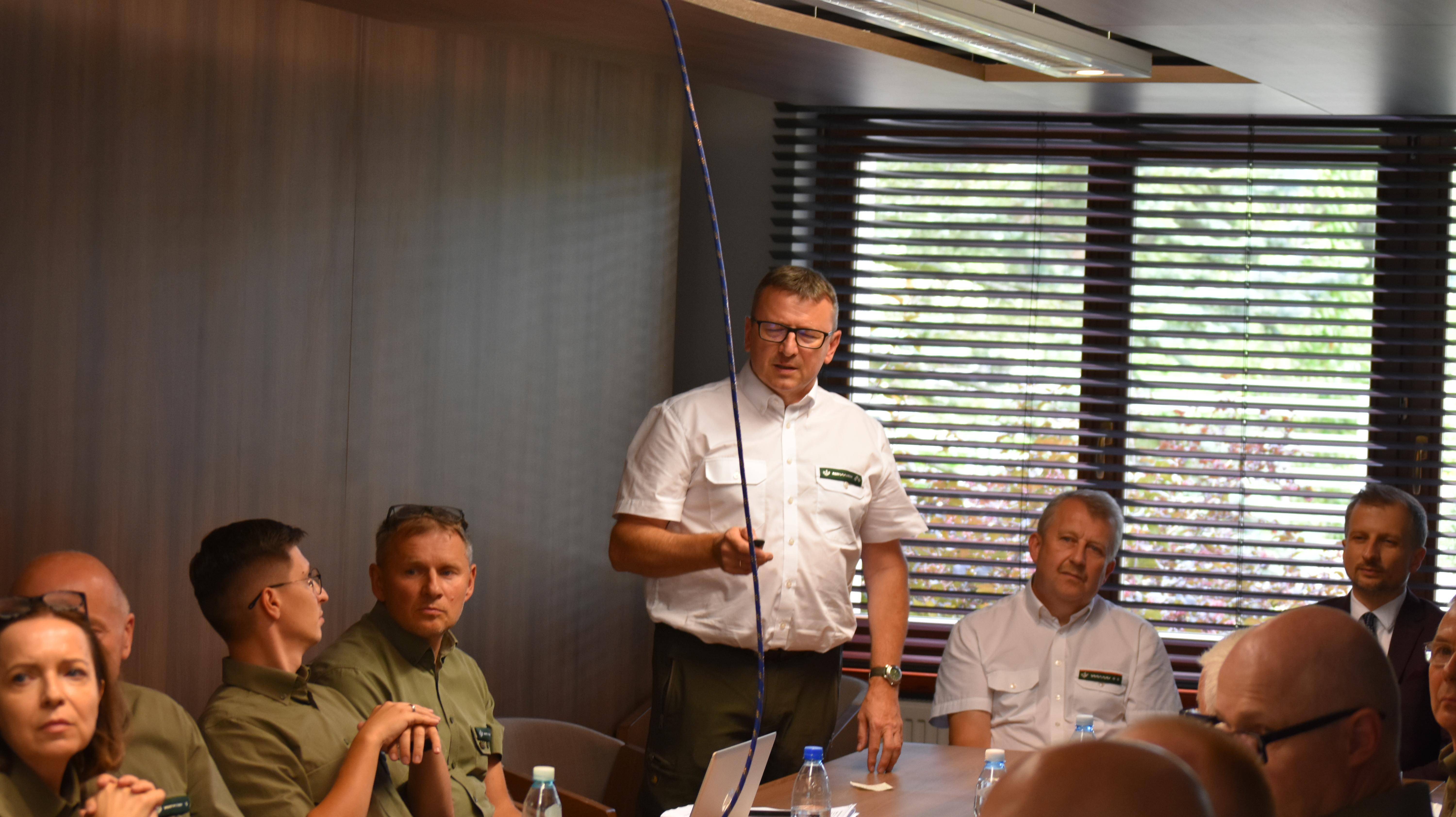 Wiceminister Mikołaj Dorożała na wstępie podziękował za obecność leśników, podkreślając wartość komunikacji i potrzebę odbudowywania wizerunku leśnika, do którego zaufanie przez ostatnie lato spadło. Jak podkreślał minister, stało się tak za sprawą grupy osób, uwikłanych w politykę i sprzeniewierzających się etosowi pracy leśnika. Ucierpiała przez to cała społeczność, rzetelnie pracujących i dbających o lasy pracowników LP.