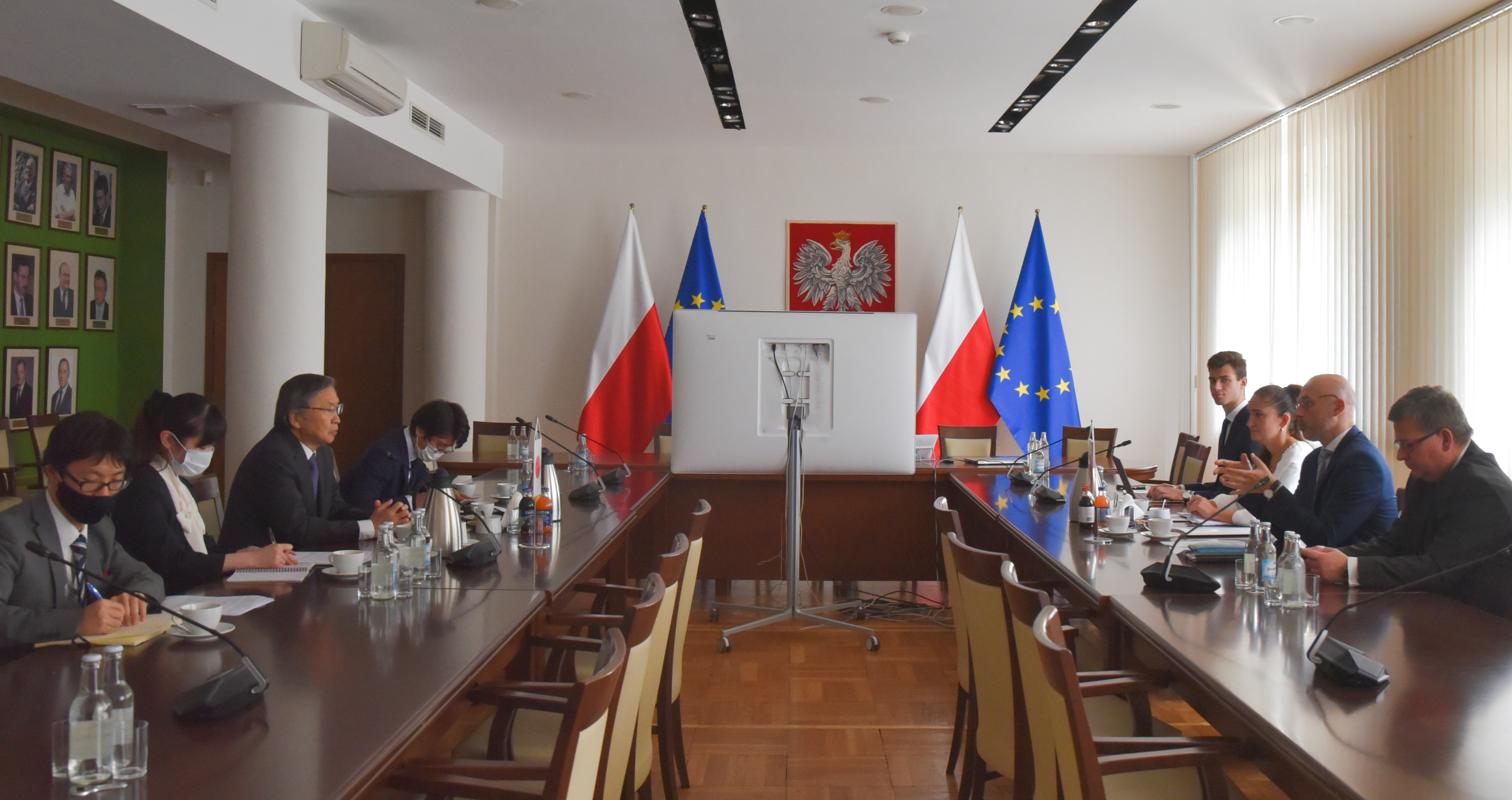 Minister klimatu Michał Kurtyka spotkał się z Ambasadorem Japonii Tsukasa Kawada w związku z zakończeniem misji w Polsce. Rozmowa odbyła się 24 września 2020 r. w Ministerstwie Klimatu.