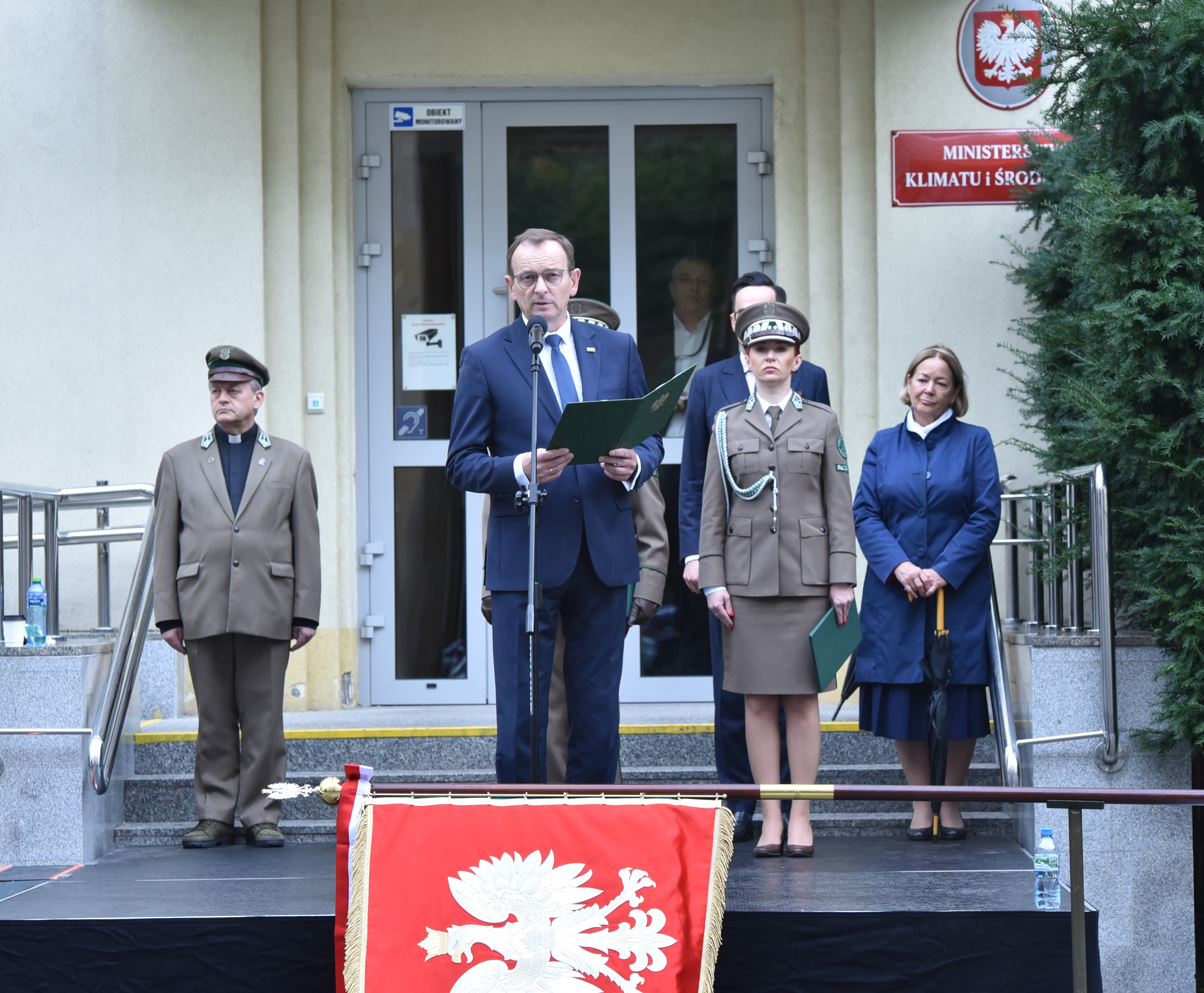 - Nadanie sztandaru stanowi wyraz szacunku i docenienia działań podejmowanych w ciągu stu lat przez Lasy Państwowe w służbie naszemu przyrodniczemu dziedzictwu - powiedział wiceminister Edward Siarka podczas ceremonii, która odbyła się 12 października br. na dziedzińcu Ministerstwa Klimatu i Środowiska.
