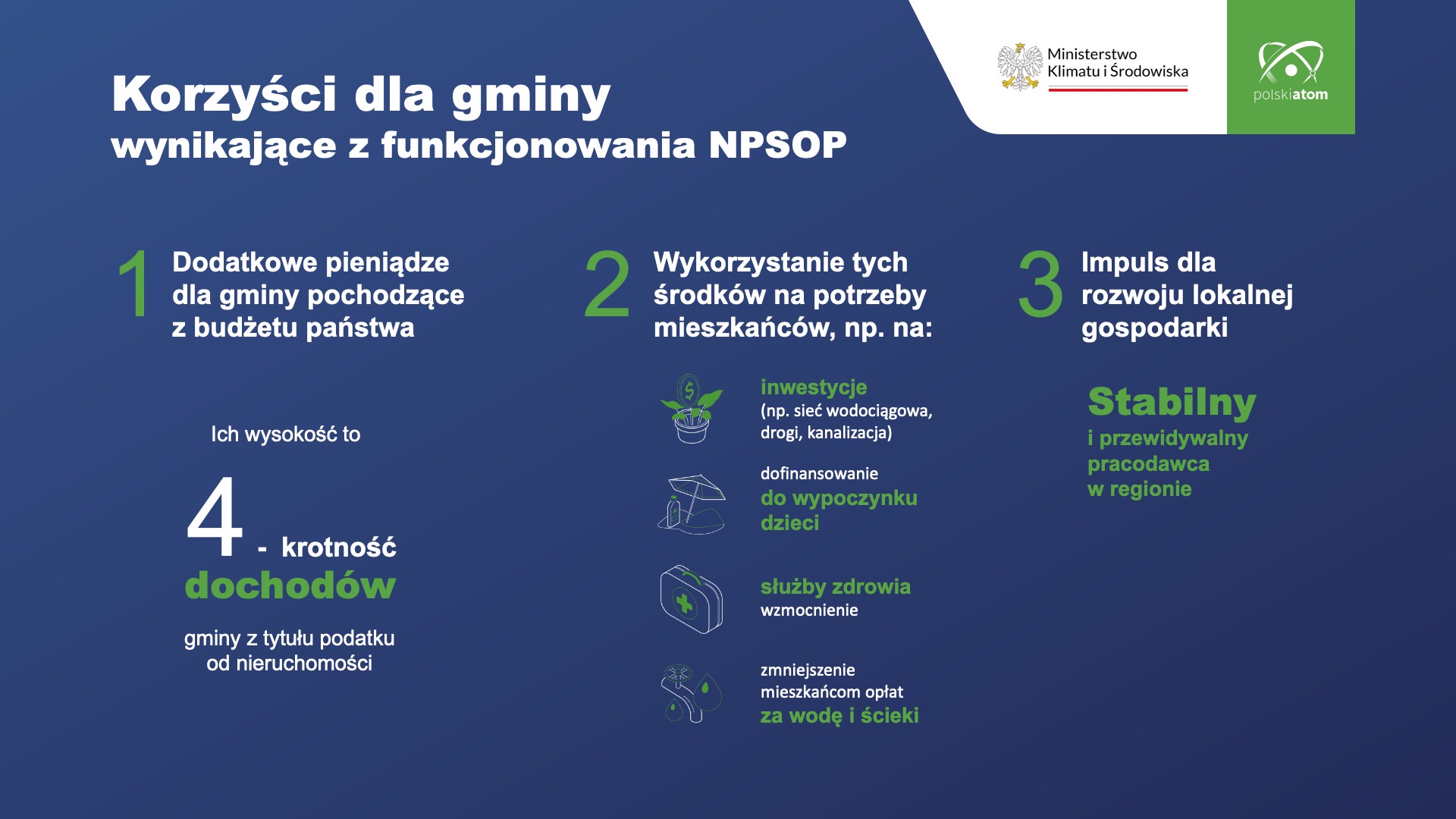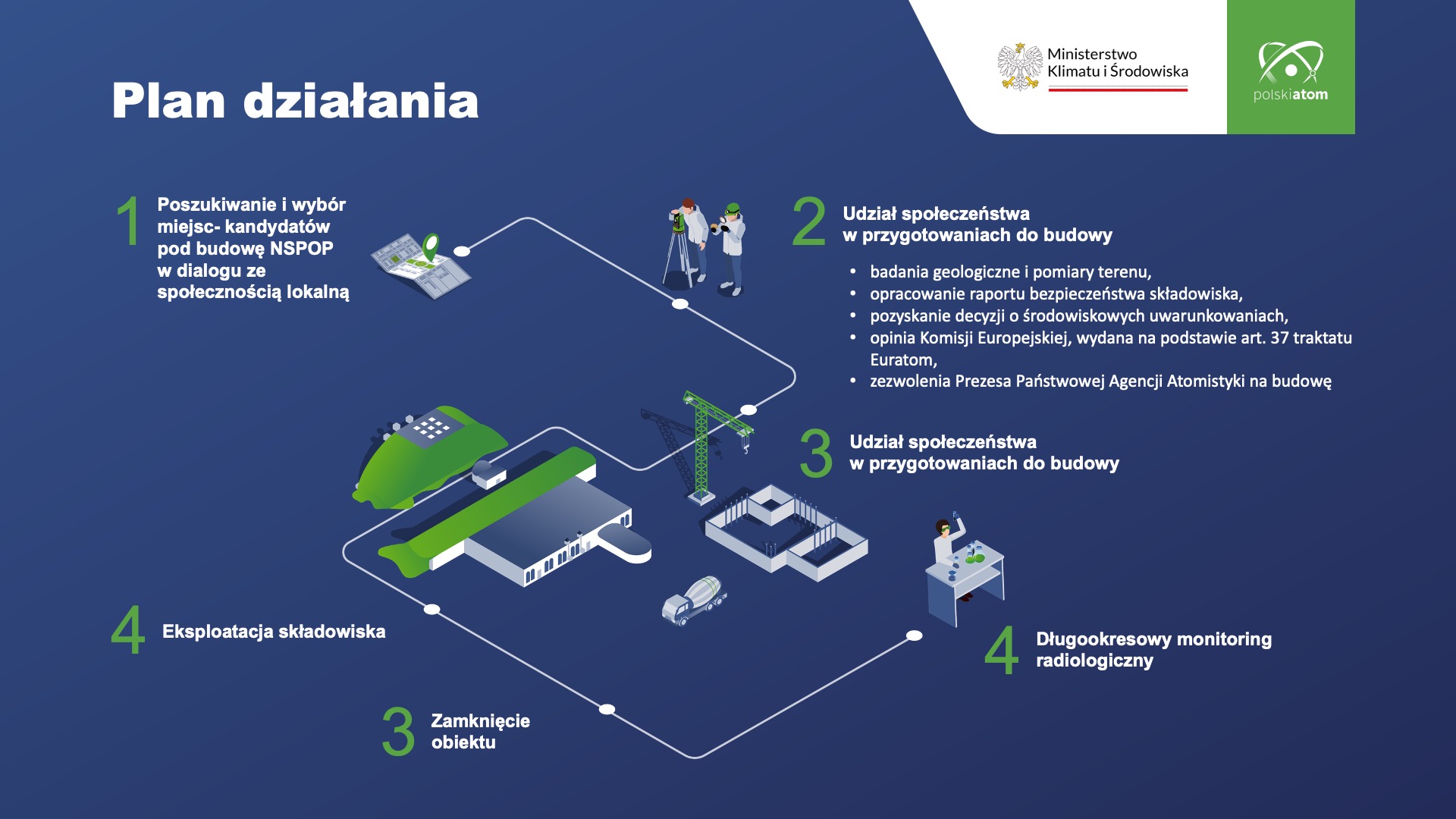 „Zapraszamy gminy do uczestnictwa w procesie wyboru miejsca na nowe składowisko powierzchniowe odpadów promieniotwórczych nisko- i średnioaktywnych (NSPOP). Dzięki temu gmina, gospodarz nowego NSOP, stworzy sobie możliwości długoterminowego rozwoju. Będzie miała z tego tytułu korzyści, zarówno finansowe, jak i pozafinansowe” – poinformował dyrektor Paweł Pytlarczyk z Ministerstwa Klimatu i Środowiska.