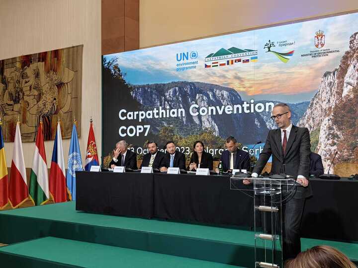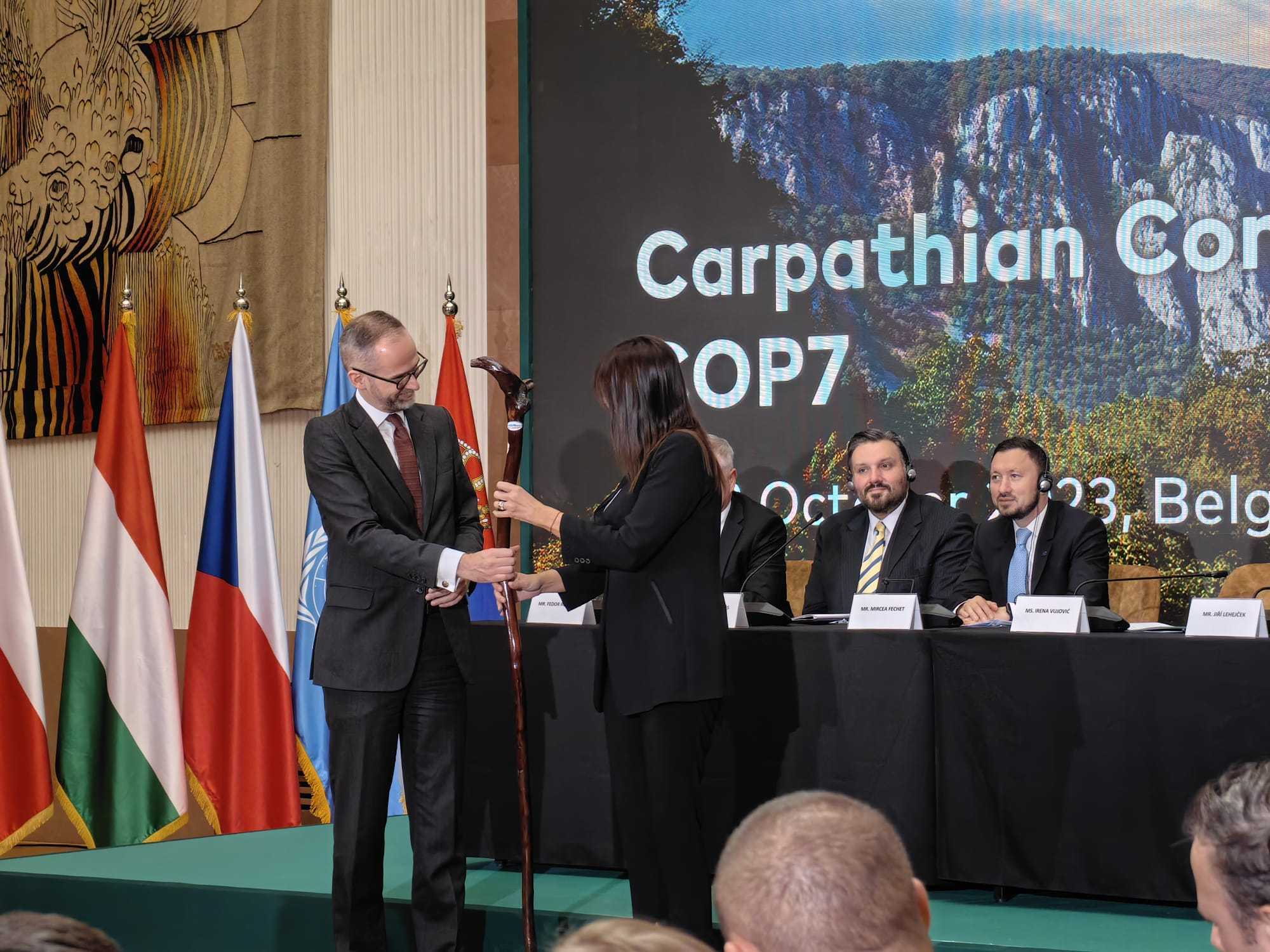 „Przyjęta 20 lat temu przez siedem krajów Konwencja Karpacka jest instrumentem umożliwiającym ochronę cennych wartości tego regionu, dając jednocześnie szansę na rozwój i poprawę warunków życia jego mieszkańców” – powiedział wiceminister klimatu i środowiska Adam Guibourgé-Czetwertyński podczas otwarcia segmentu Wysokiego Szczebla 7. posiedzenia Konferencji Stron Konwencji o ochronie i zrównoważonym rozwoju Karpat (COP7). W trakcie wydarzenia, które odbyło się 12 października 2023 r. w Belgradzie, nastąpiło przekazanie przez Polskę Prezydencji Konwencji Karpackiej na rzecz Serbii.
