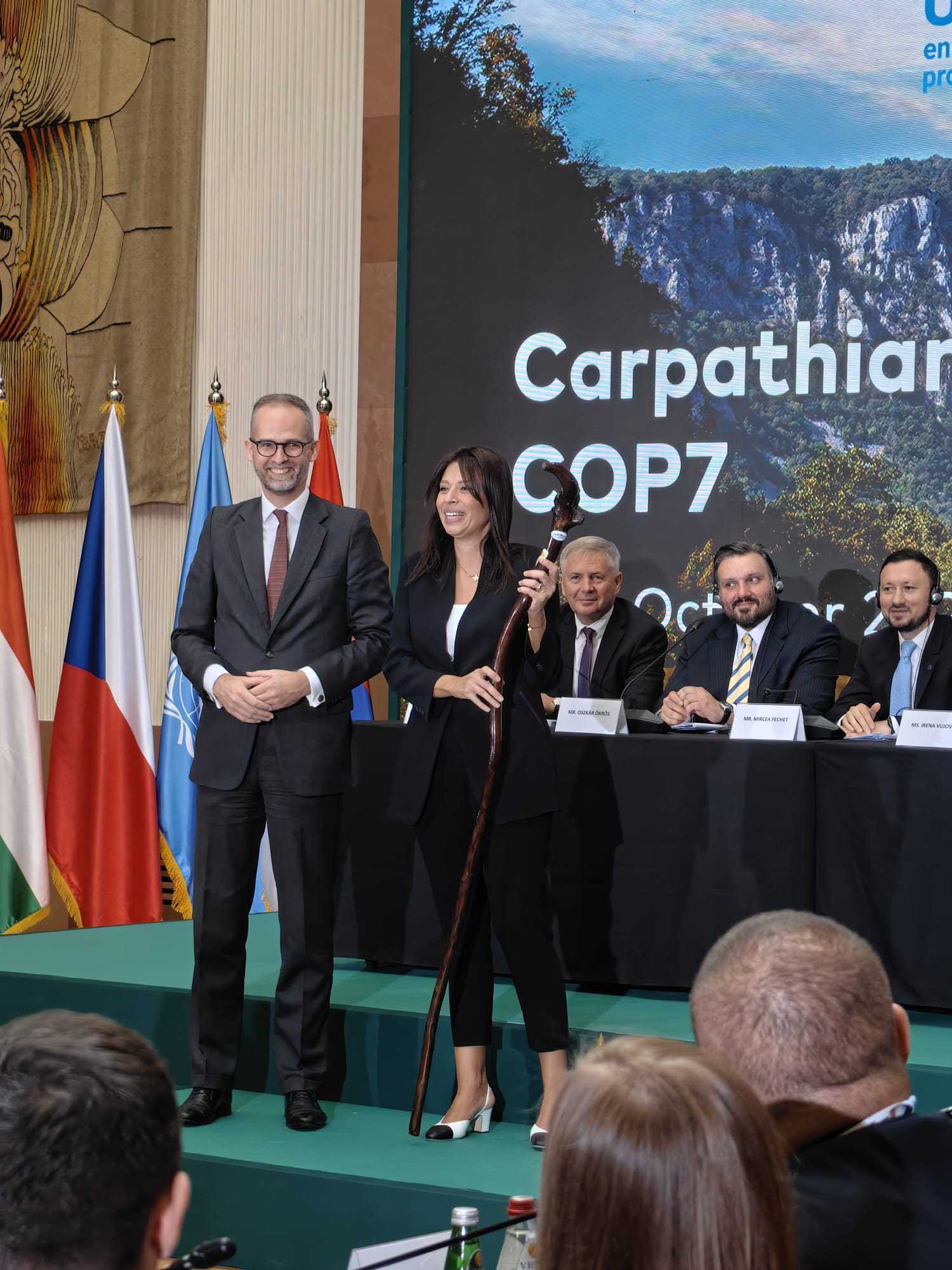 Zebraliśmy się tu dziś, ponieważ dzielimy wspólną wizję dotyczącą regionu Karpackiego, w którym na powierzchni ponad 400 tysięcy kilometrów kwadratowych mieszka ok. 17 milionów ludzi. Ekosystemy górskie są nie tylko rezerwuarem różnorodności przyrodniczej w jej najbardziej dzikiej i niezmienionej formie, ale też cennym źródłem wody pitnej i innych surowców ważnych dla gospodarki człowieka. Stanowiąc cenne dziedzictwo kulturalne i przyrodnicze, ekosystemy górskie sprzyjają rozwojowi gospodarki pasterskiej i turystyki