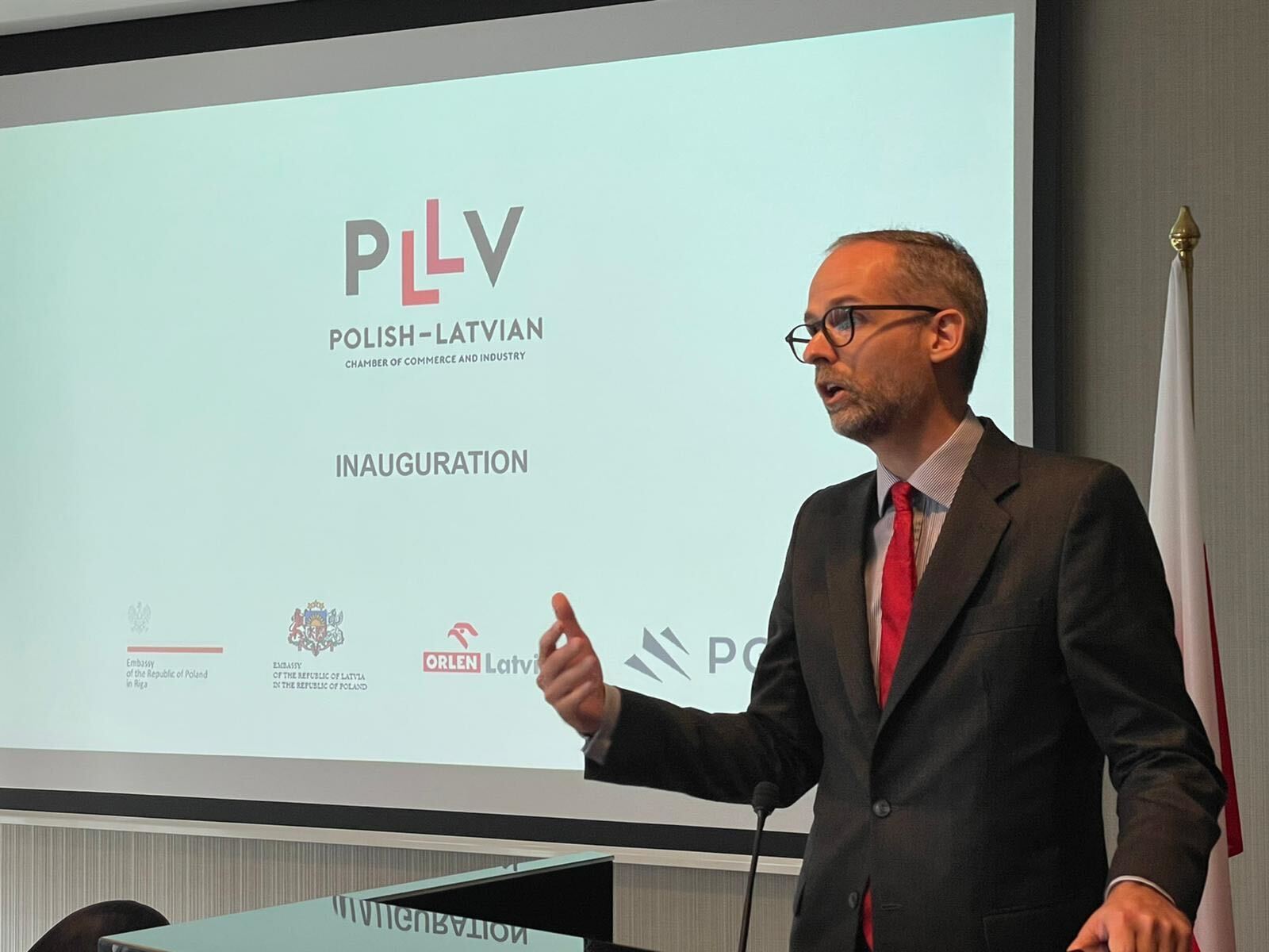 Wiceminister Adam Guibourgé-Czetwertyński na otwarciu Polsko-Łotewskiej Izby Przemysłowo-Handlowej