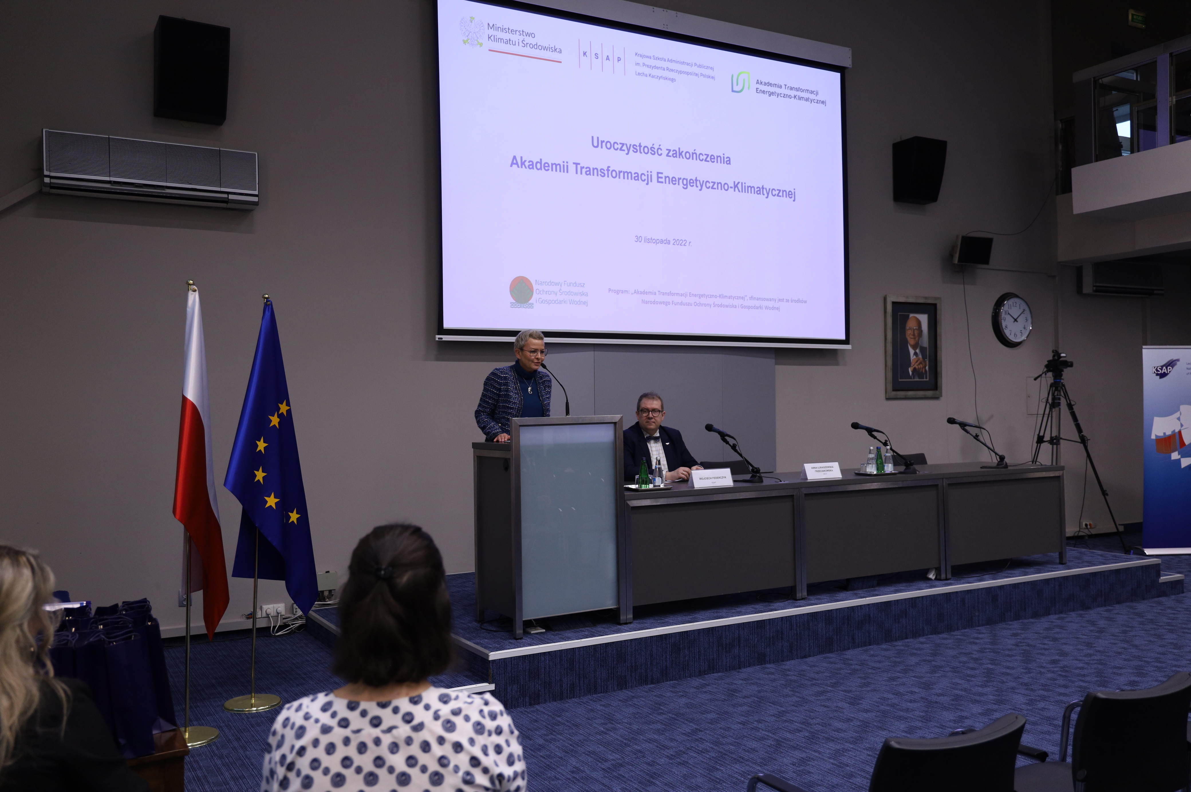 Ministerstwo Klimatu i Środowiska, Krajowa Szkoła Administracji Publicznej oraz Narodowy Fundusz Ochrony Środowiska i Gospodarki Wodnej podsumowali projekt Akademii Transformacji Energetyczno-Klimatycznej. W uroczystości zakończenia kształcenia uczestników programu ATEK, które odbyło się 30 listopada 2022 r. w Warszawie, udział wzięła wiceminister klimatu i środowiska Anna Łukaszewska-Trzeciakowska.