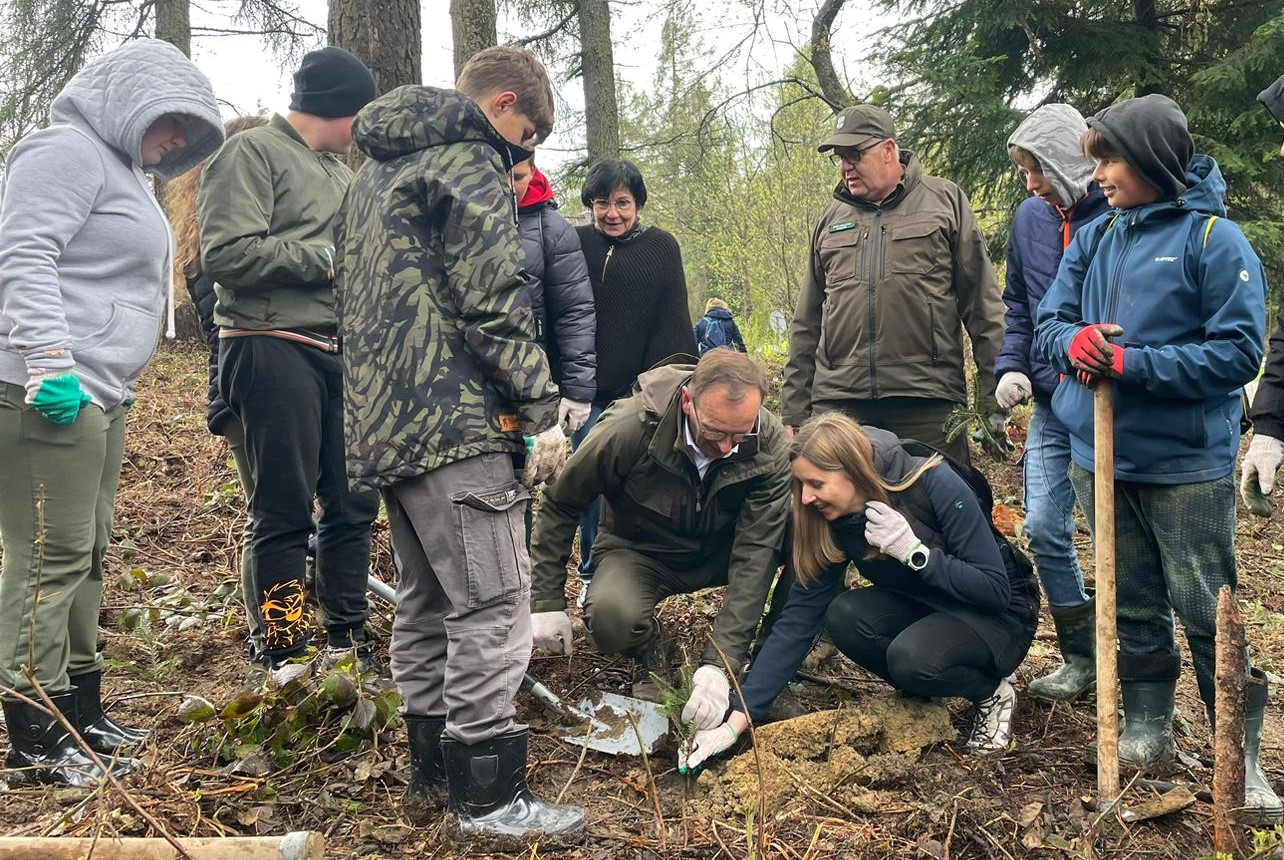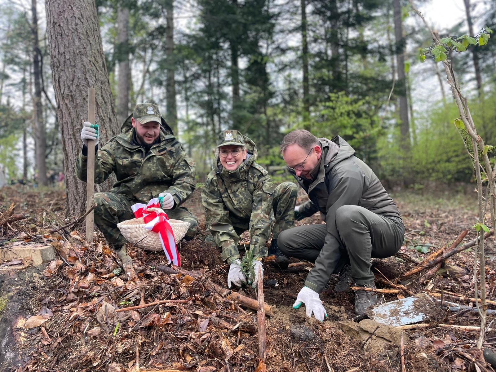 Wiceminister Edward Siarka podczas sadzenia kolejnego Lasu Pamięci Jana Pawła II