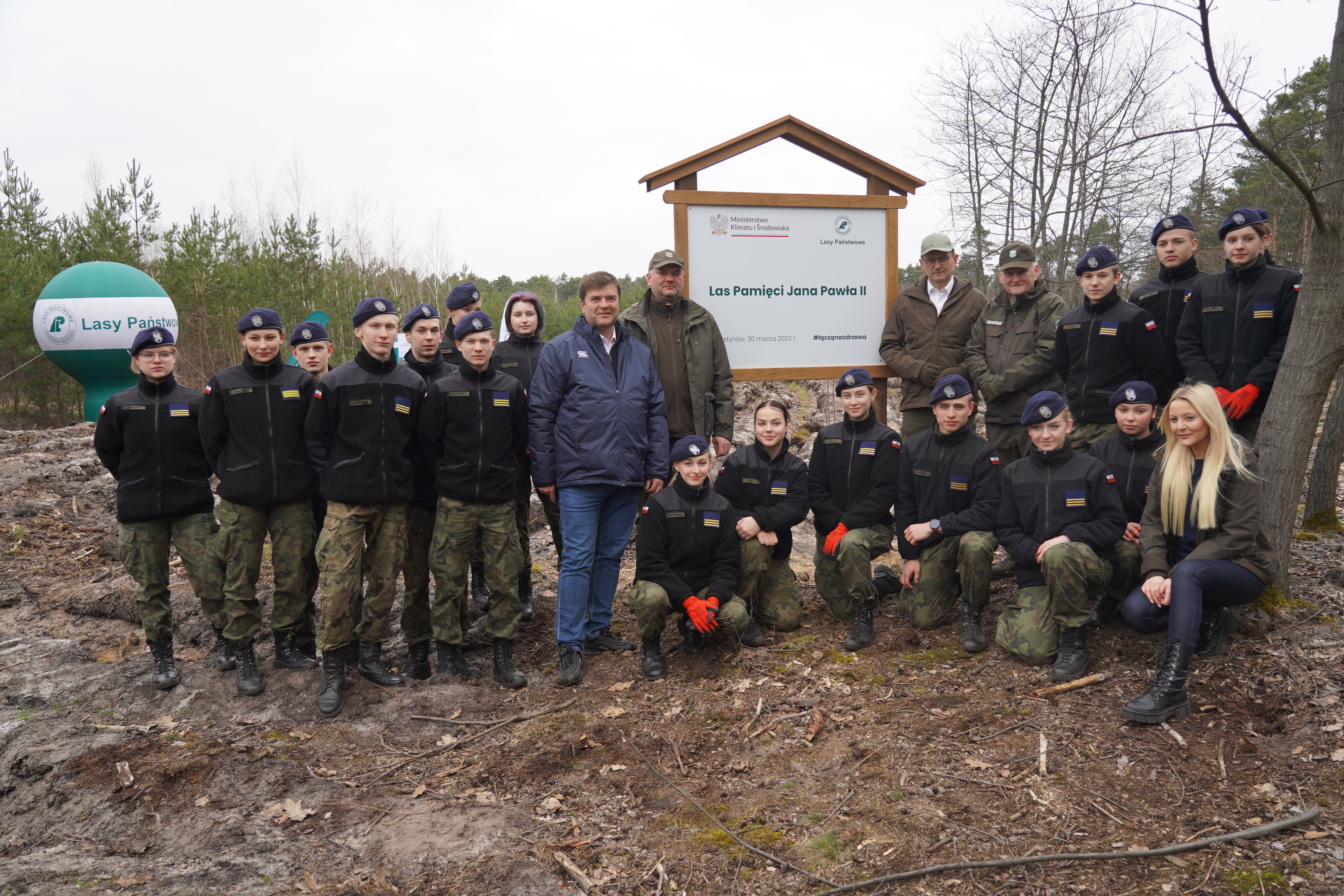 „Polscy leśnicy od zawsze stali na straży najcenniejszych wartości i uznanych autorytetów. Teraz stają w obronie dobrego imienia papieża Jana Pawła II. Na terenie całej Polski rusza akcja sadzenia Lasów Pamięci Jana Pawła II, która jest hołdem dla jego zasług dla naszej ojczyzny” – podkreślił wiceminister klimatu i środowiska Edward Siarka podczas inauguracji akcji w Nadleśnictwie Celestynów. Wydarzenie odbyło się 30 marca 2023 r.