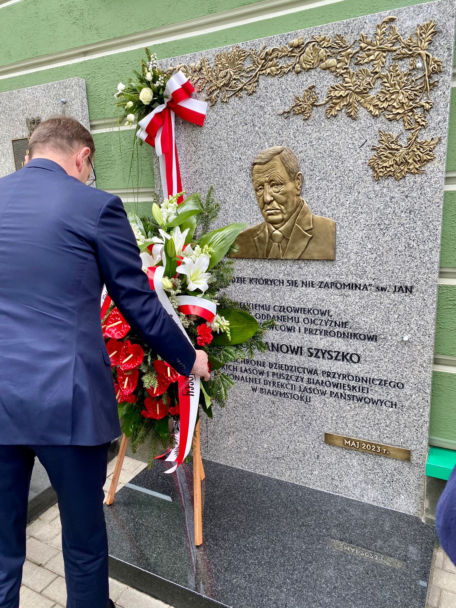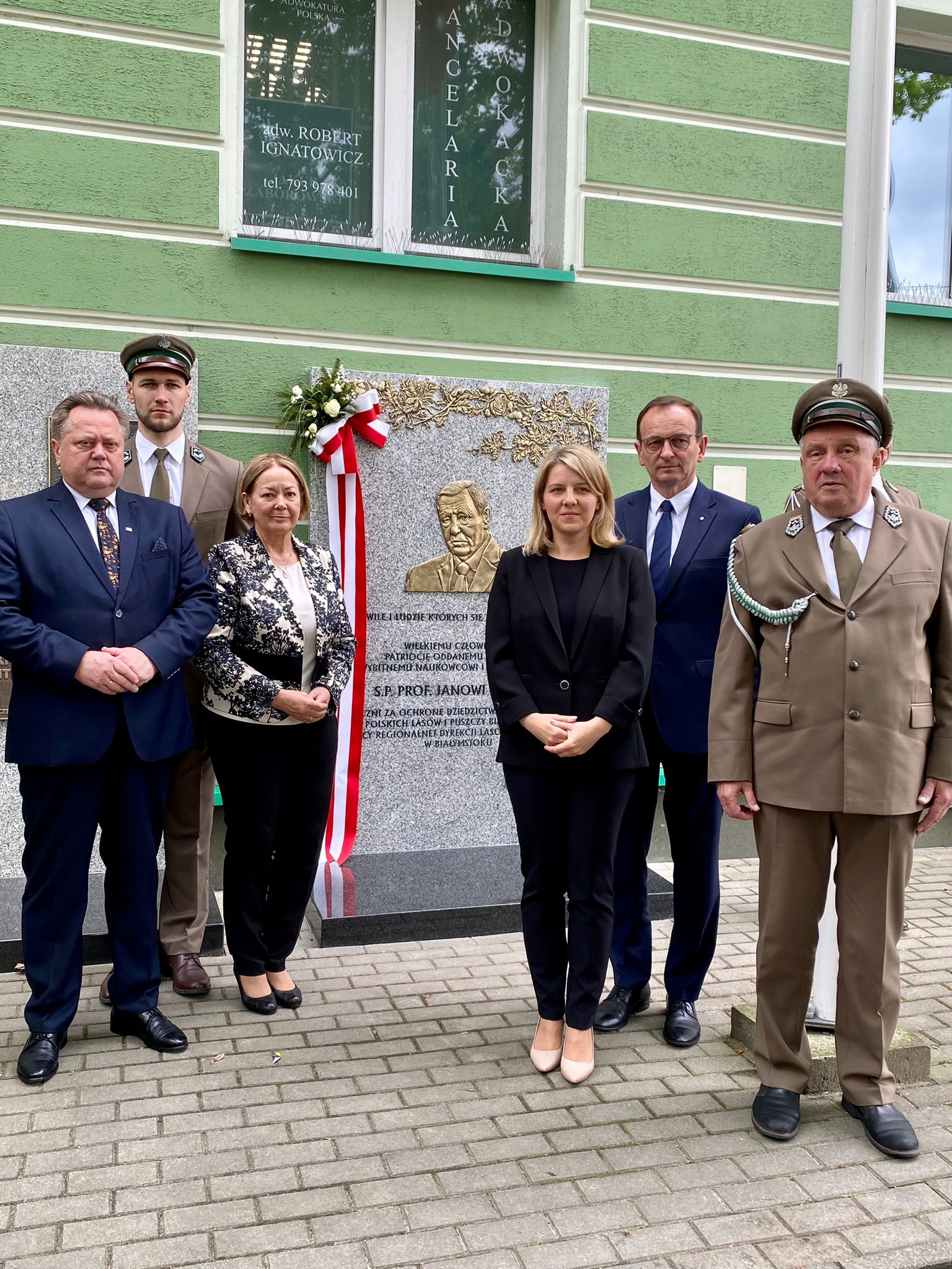– Śp. Profesor zapisał się jako człowiek, któremu przez całe życie w sposób szczególny na sercu leżały sprawy polskiej przyrody. Cieszę się, że możemy dać dziś wyraz wielkiego uznania dla jego zasług – powiedział wiceminister Edward Siarka podczas odsłonięcia tablicy upamiętniającej śp. Jana Szyszko 16 maja br. w gmachu Regionalnej Dyrekcji Lasów Państwowych w Białymstoku.