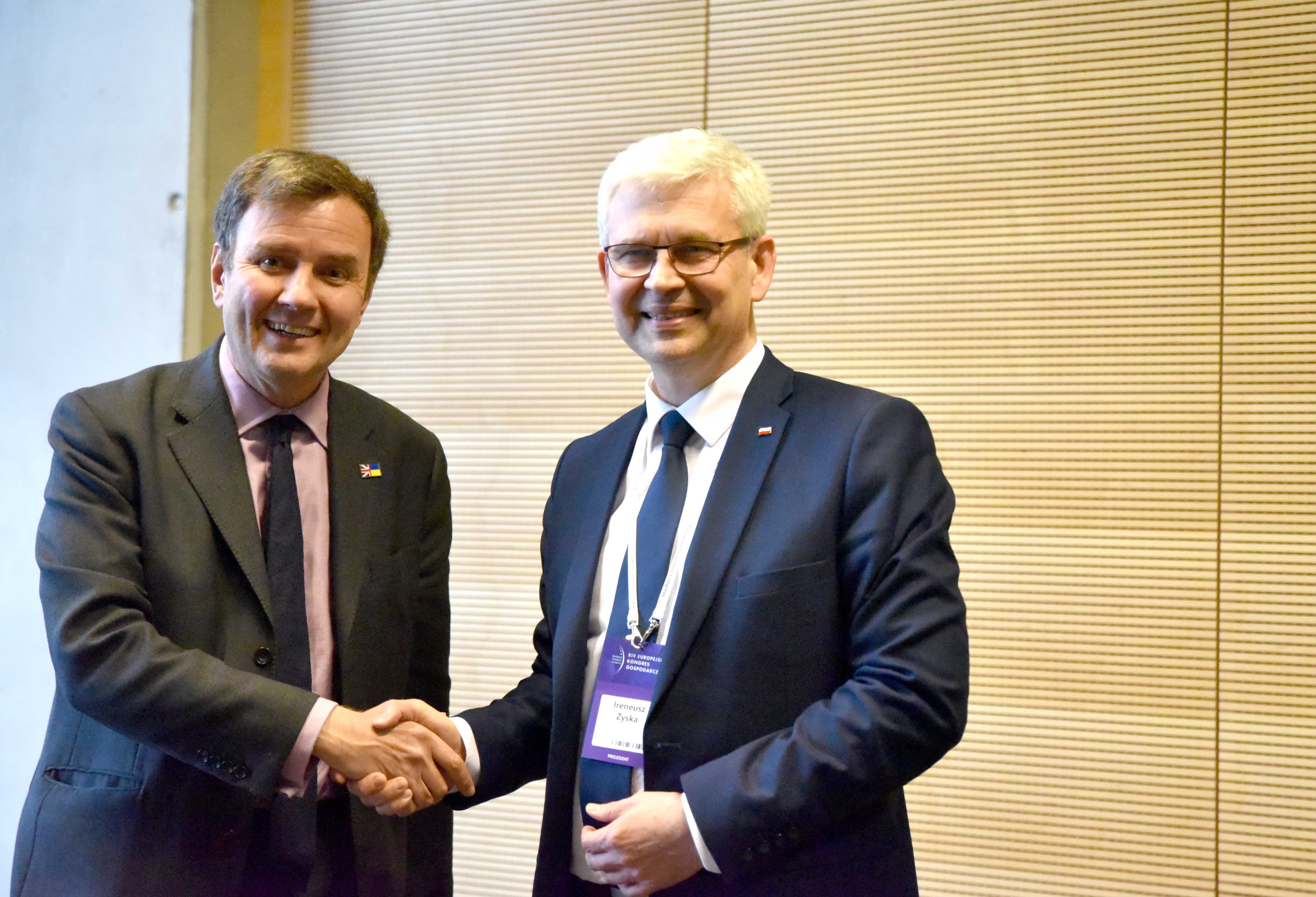 Pierwszego dnia Europejskiego Kongresu Gospodarczego wiceminister Ireneusz Zyska spotkał się również z ministrem biznesu, energii i strategii przemysłowej Wielkiej Brytanii Gregiem Handsem.