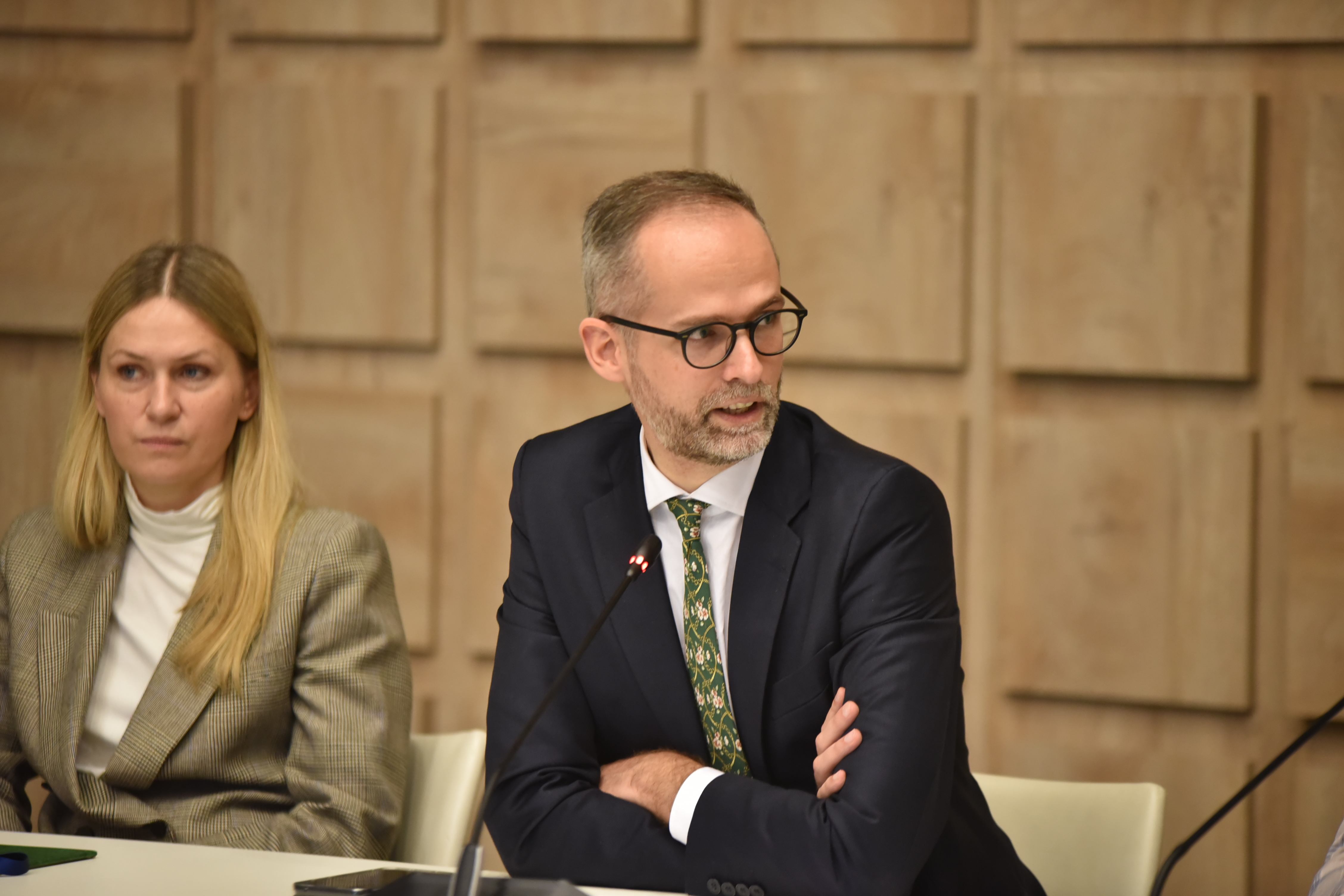Wiceminister klimatu i środowiska Adam Guibourgé-Czetwertyński na posiedzeniu Młodzieżowej Rady Klimatycznej