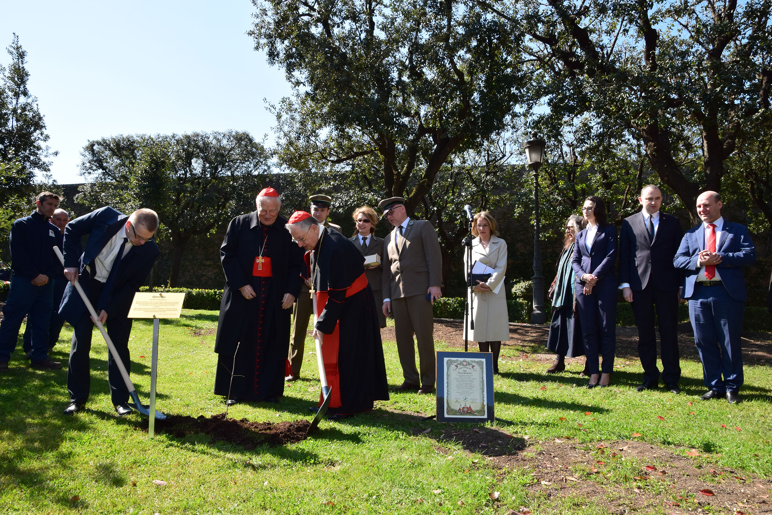 Wiceminister Golińska wraz z delegacją Lasów Państwowych oraz przedstawicielami polskiego rządu spotkała się z Giuseppe Bertello, Gubernatorem Watykanu. Następnie w Ogrodach Watykańskich przy udziale zaproszonych gości zostały posadzone sadzonki polskiego dębu szypułkowego jako symbol mocnych relacji. Pozostałe sadzonki, poświęcone w ubiegłym roku przez Papieża Franciszka, zostały posadzone podczas różnych uroczystości upamiętniających 100-lecie odzyskania przez Polskę niepodległości. Cztery z poświęconych dębów powróciły teraz do Watykanu.