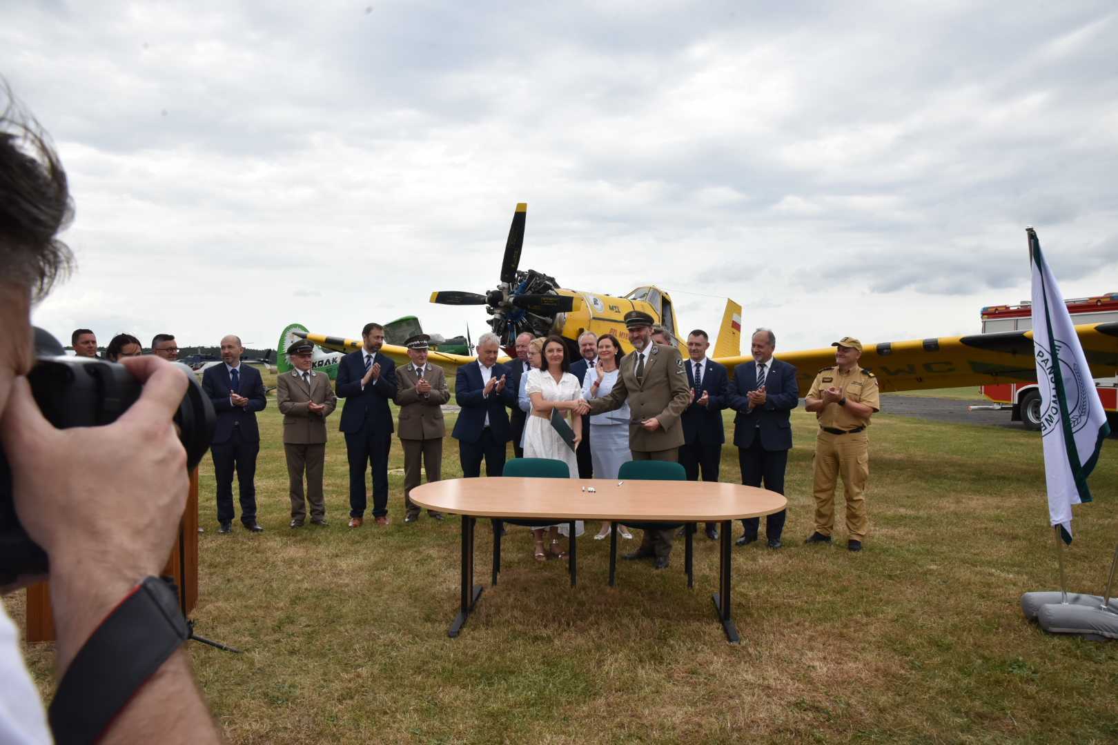 Stan zagrożenia pożarowego w polskich lasach rośnie przez suszę. Chociaż przyczyną większości pożarów nadal są podpalenia, to ryzyko rośnie wraz z upałami i suszą. 23 czerwca 2023 r. na terenie Leśnej Bazy Lotniczej Regionalnej Dyrekcji Lasów w Katowicach podpisano umowę na dofinansowania w wysokości 800 tys. zł na loty patrolowo-gaśnicze na terenach leśnych. To efekt ścisłej współpracy Wojewódzkich Funduszy Ochrony Środowiska i Gospodarki Wodnej we wspieraniu ochrony lasów przed zagrożeniem pożarowym. W uroczystości uczestniczyła minister klimatu i środowiska Anna Moskwa, która podkreśliła, że dzięki znacznemu powiększeniu środków na aktywną ochronę lasów, zwiększy się skuteczność działań przeciwpożarowych oraz bezpieczeństwo w lasach.