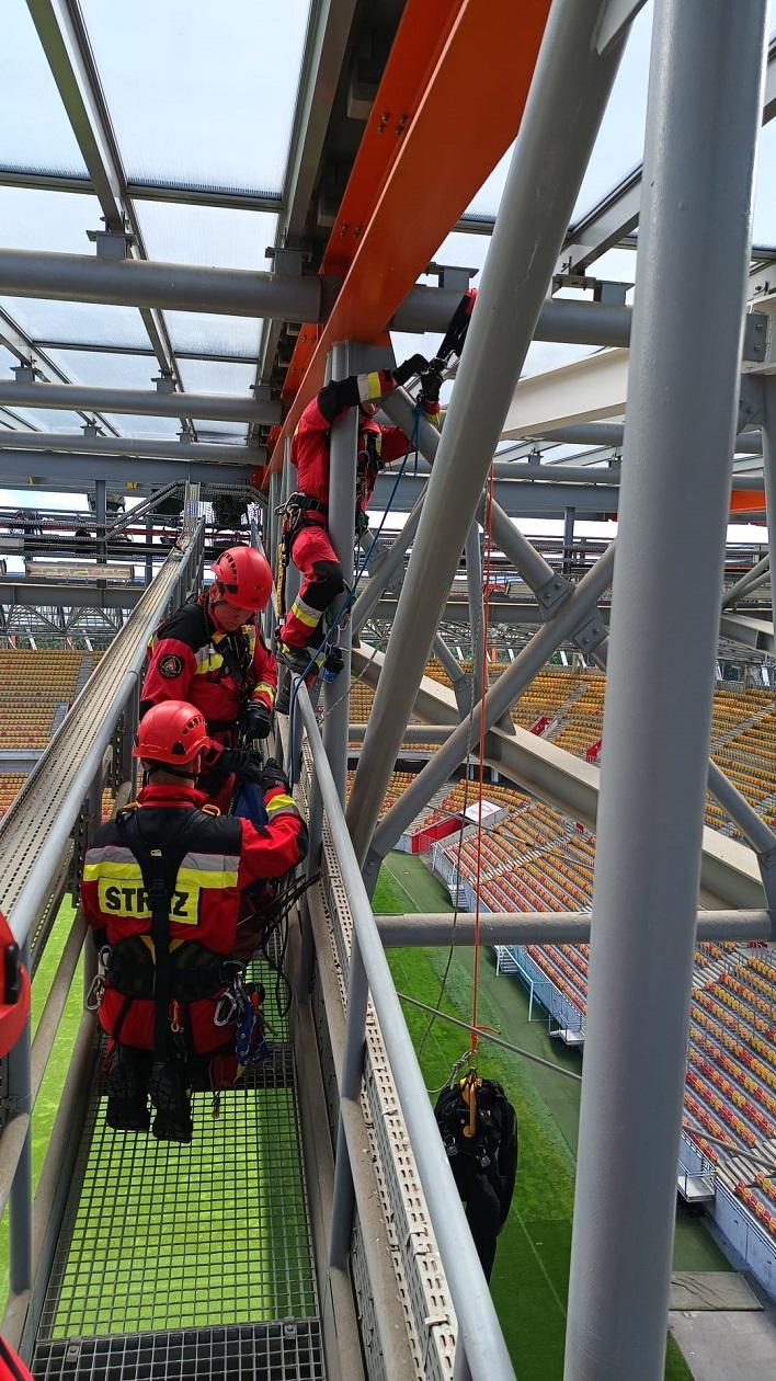 Scenariusz ćwiczeń przewidywał powstanie symulowanego pożaru w pomieszczeniu cateringu zlokalizowanego na 4 kondygnacji Stadionu Miejskiego. W trakcie powstania zdarzenia, dwie ekipy pracowników tj. w sumie 4 osoby prowadzą prace konserwatorskie. Dwóch z nich w okolicy pomieszczenia, gdzie powstało zdarzenie. Dwóch kolejnych na wysokości, nad miejscem pożaru, na podeście technicznym. Pożar powoduje silne zadymienie, które szybko się rozprzestrzenia.