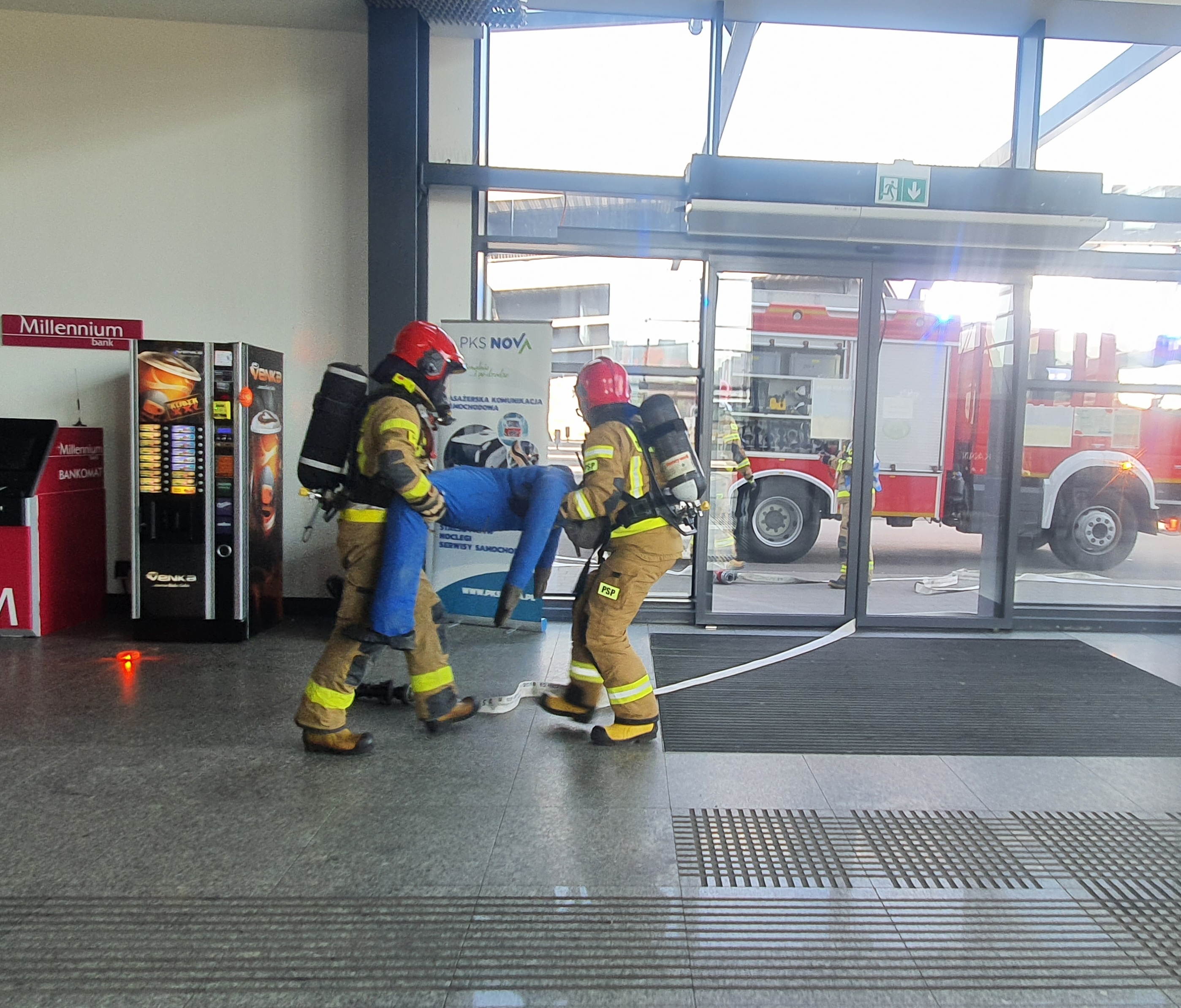 Celem ćwiczeń było rozpoznanie możliwości i warunków prowadzenia skutecznych działań ratowniczo-gaśniczych przez jednostki PSP, podczas symulowanego zdarzenia w poczekalni dworca PKS. W wyniku pożaru poszkodowana została jedna osoba, która została ewakuowana przez ratowników na zewnątrz budynku, gdzie udzielono jej kwalifikowanej pierwszej pomocy. Ćwiczenia pozwoliły na utrwalenie wśród ratowników właściwych nawyków i zasad BHP, obowiązujących podczas działań ratowniczo-gaśniczych. Po zakończeniu działań strażacy zostali zapoznani ze specyfiką oraz charakterem obiektu.