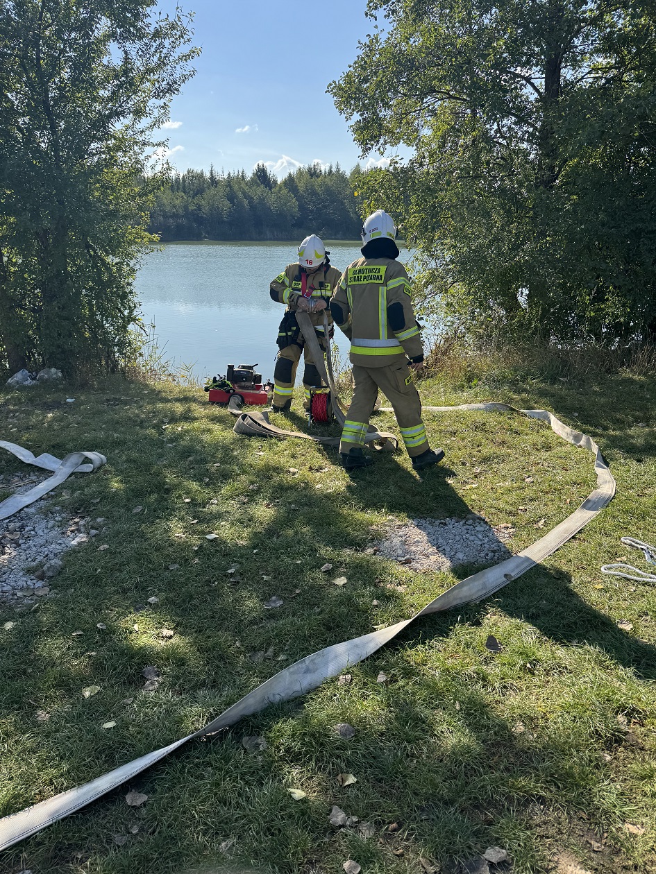 Dodatkowym elementem scenariusza była awaria sieci hydrantowej. Skutkowało to koniecznością znalezienia zastępczego źródła wody. Strażacy musieli zorganizować punkt czerpania wody w oparciu o zbiornik wodny w m. Koplany i zbudować magistralę wodną z linii wężowych.