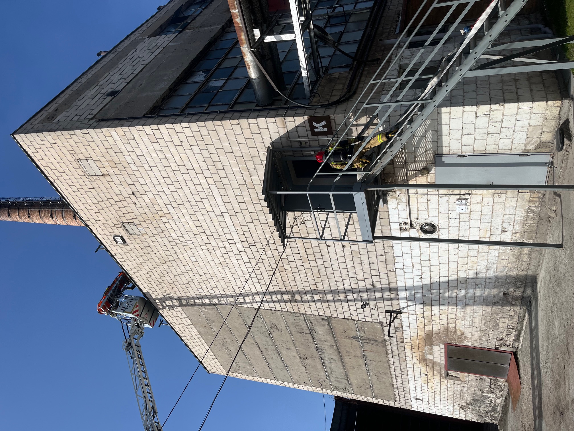 W pomieszczeniu kotłowni w jednym z budynków, dochodzi do zwarcia i zapalenia się maszyny technologicznej, w wyniku czego ogień rozprzestrzenienia się na magazynowane obok produkty palne. Zadymienie rozchodzi się wewnątrz wydzielonej strefy pożarowej, widoczny dym na zewnątrz. Podjęto nieskuteczną próbę ugaszenia pożaru przez pracownika. Osoba odpowiedzialna za przeprowadzenie ewakuacji koordynuje ewakuację pracowników na zewnątrz budynku. W wyniku pożaru poszkodowane zostały dwie osoby, które ewakuowano przez ratowników na zewnątrz budynku. Jedna z nich wymagała pomocy medycznej.