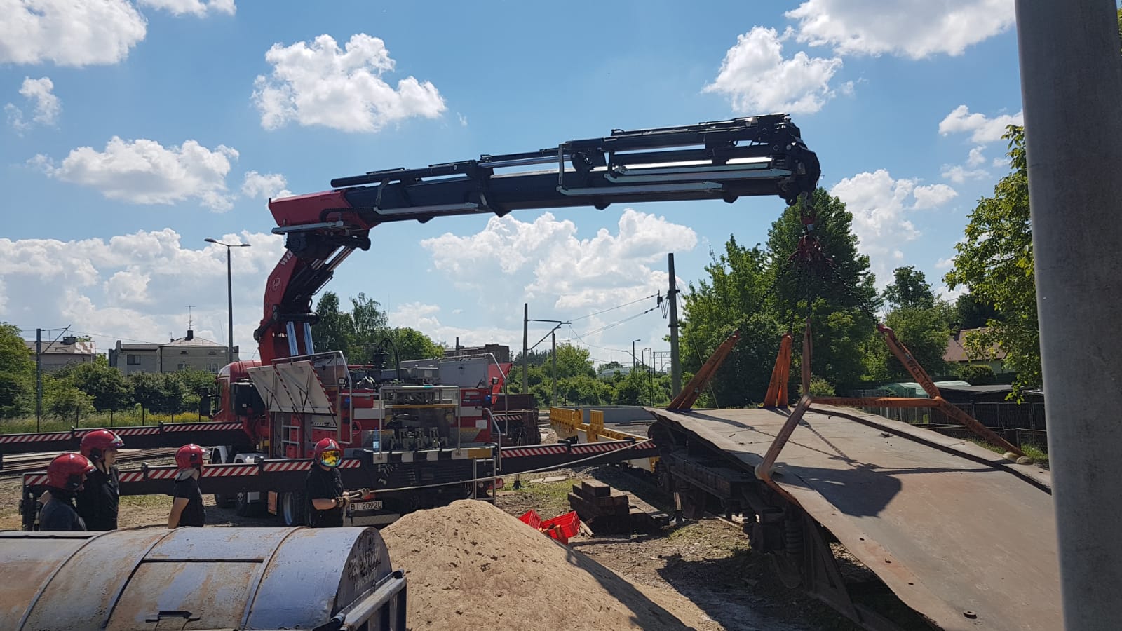 W ramach współpracy z pracownikami PKP przeprowadzono praktyczne ćwiczenia, które miały na celu zapoznanie się z obsługą i możliwościami bojowymi pojazdu SCDz-40 w działaniach na torach z obiektami o dużej masie i gabarycie. Ćwiczenia polegały na podniesieniu i przestawieniu lawety kolejowej na tory przy użyciu żurawia Fassi 1950 2.28 o max udźwigu 40t znajdującego się na SCDz-40. Lawetę podczepiono przy użyciu zawiesi pasowych oraz łańcuchowych zakończonych szeklami. Ładunek jakim była laweta zabezpieczono dwoma linami odciągowymi w celu stabilizacji podniesionego wagonu.