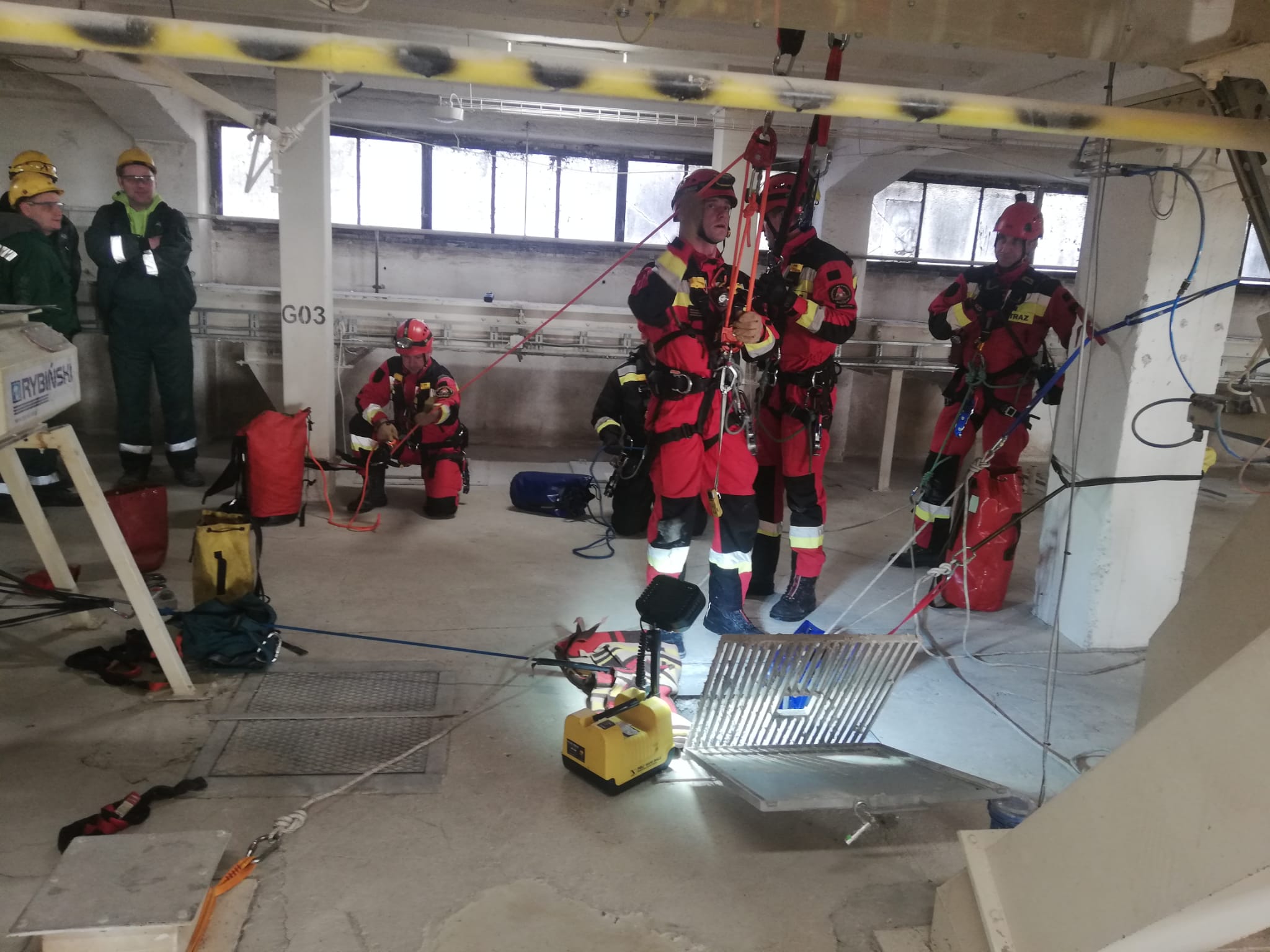 Założenie do ćwiczeń obejmowało ewakuację poszkodowanego pracownika firmy alpinistycznej, który zasłabł podczas prowadzenia prac wewnątrz elewatora zbożowego. Ćwiczenia były połączone z prelekcją skierowaną do pracowników firmy, którzy z zainteresowaniem przyglądali się budowie stanowisk, sprawianiu układów wyciągowych, mających na celu bezpieczne i szybkie wydobycie poszkodowanego. Zamiar taktyczny obejmował budowę wieloblocza 4:1, co przy znacznej redukcji wagi pozwoliło wydobyć poszkodowanego i ratownika na powierzchnię jednocześnie. Merytorycznym omówieniem zajął się Dowódca Grupy - st. kpt. Łukasz Ostrowski, a działaniami dowodził mł. kpt. Tomasz Nikiforuk.