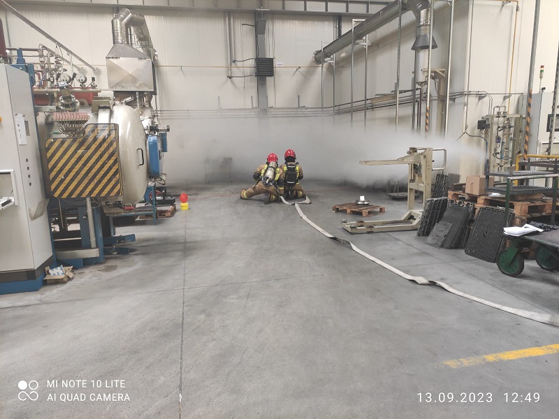 Na zakończenie ćwiczeń, wszyscy uczestnicy zostali zapoznani ze specyfiką zakładu, jego rozmieszczeniem, a także możliwymi do wystąpienia zagrożeniami, związanymi z produkcją i magazynowaniem materiałów.