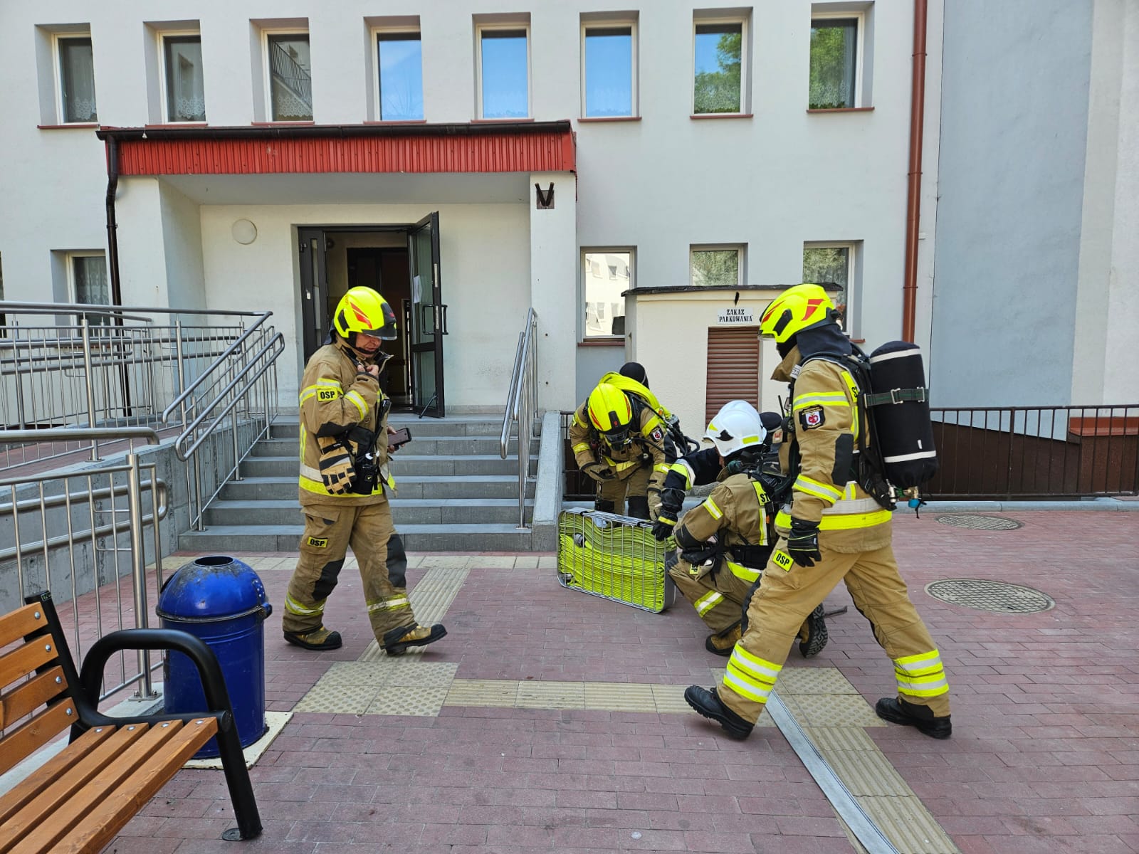 W wyniku zaprószenia ognia przez jednego z podopiecznych w pomieszczeniu mieszkalnym budynku C na I piętrze powstaje pożar, który w krótkim czasie obejmuje znaczną powierzchnię pomieszczenia. Wewnątrz budynku w wyniku pożaru powstaje silne zadymienie. System sygnalizacji pożaru identyfikuje zagrożenie oraz przekazuje informację personelowi Domu Pomocy Społecznej. SK KM PSP dysponuje na miejsce odpowiednie siły i środki. W chwili przybycia pierwszych zastępów do zdarzenia KDR uzyskuje informację od personelu o trwającej ewakuacji obiektu i miejscu w którym rozwija się pożar. Z ustaleń wynika, że nie wszyscy pensjonariusze zdążyli opuścić budynek Domu Pomocy Społecznej.