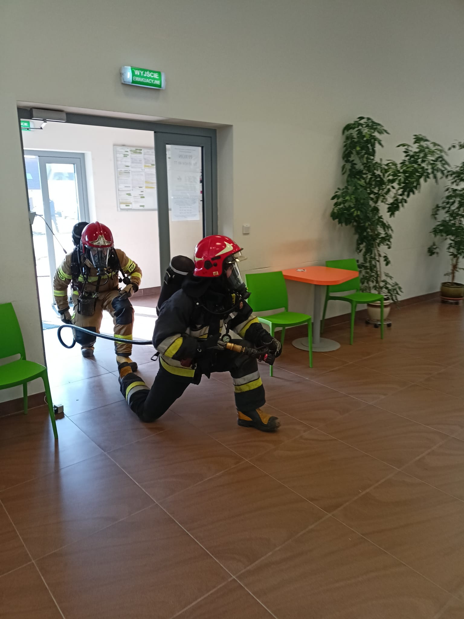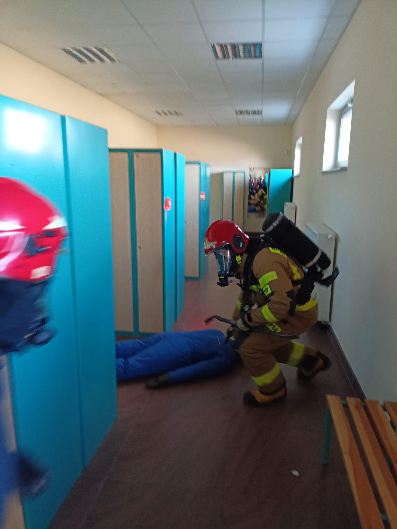 Scenariusz ćwiczeń zakładał, że w budynku doszło do zwarcia elektrycznego w pomieszczeniu szatni. Ładujący się telefon pozostawiony bez dozoru oraz awaria baterii urządzenia wywołała pożar. Pracownicy ewakuowali się z budynku. Dwie osoby, które zauważyły pożar, podjęły nieskuteczną próbę jego gaszenia. Jedna z nich, w wyniku dużego stężenia gazów pożarowych zasłabła i straciła przytomność. Strażacy z JRG nr 4, zabezpieczeni w sprzęt ochrony układu oddechowego oraz linię gaśniczą, zlokalizowali i ugasili pożar a następnie ewakuowali poszkodowaną osobę na zewnątrz. Tam została mu udzielona kwalifikowana pierwsza pomoc. Zastęp z OSP Klepacze miał za zadanie przeszukać cały budynek a zastęp z JRG nr 3 był odpowiedzialny za zabezpieczenie wodne działań ratowniczo-gaśniczych.