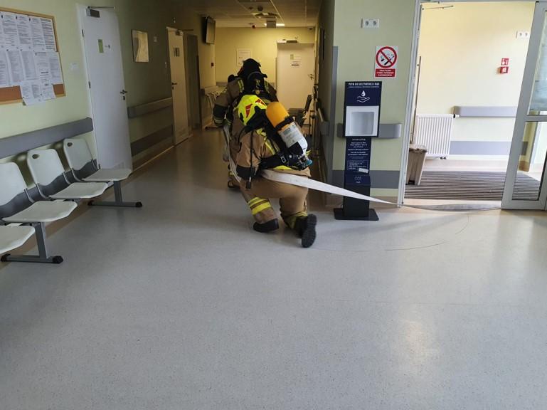 Według scenariusza ćwiczeń w jednym z pomieszczeń na parterze przez nieuwagę personelu szpitala dochodzi do zapalenia się środków do dezynfekcji w wyniku czego wybucha pożar, który rozprzestrzenia się na hol oddziału. Dwie osoby z personelu szpitala, które podjęły nieudaną próbę ugaszenia pożaru i pacjent znajdujący się w holu zostają poszkodowane. Zasilanie elektryczne budynku zostało odłączone przez uprawnionego pracownika. Przybyłe na miejsce zastępy PSP i OSP podejmują działania ratowniczo-gaśnicze oraz przeprowadzają ewakuację osób poszkodowanych.