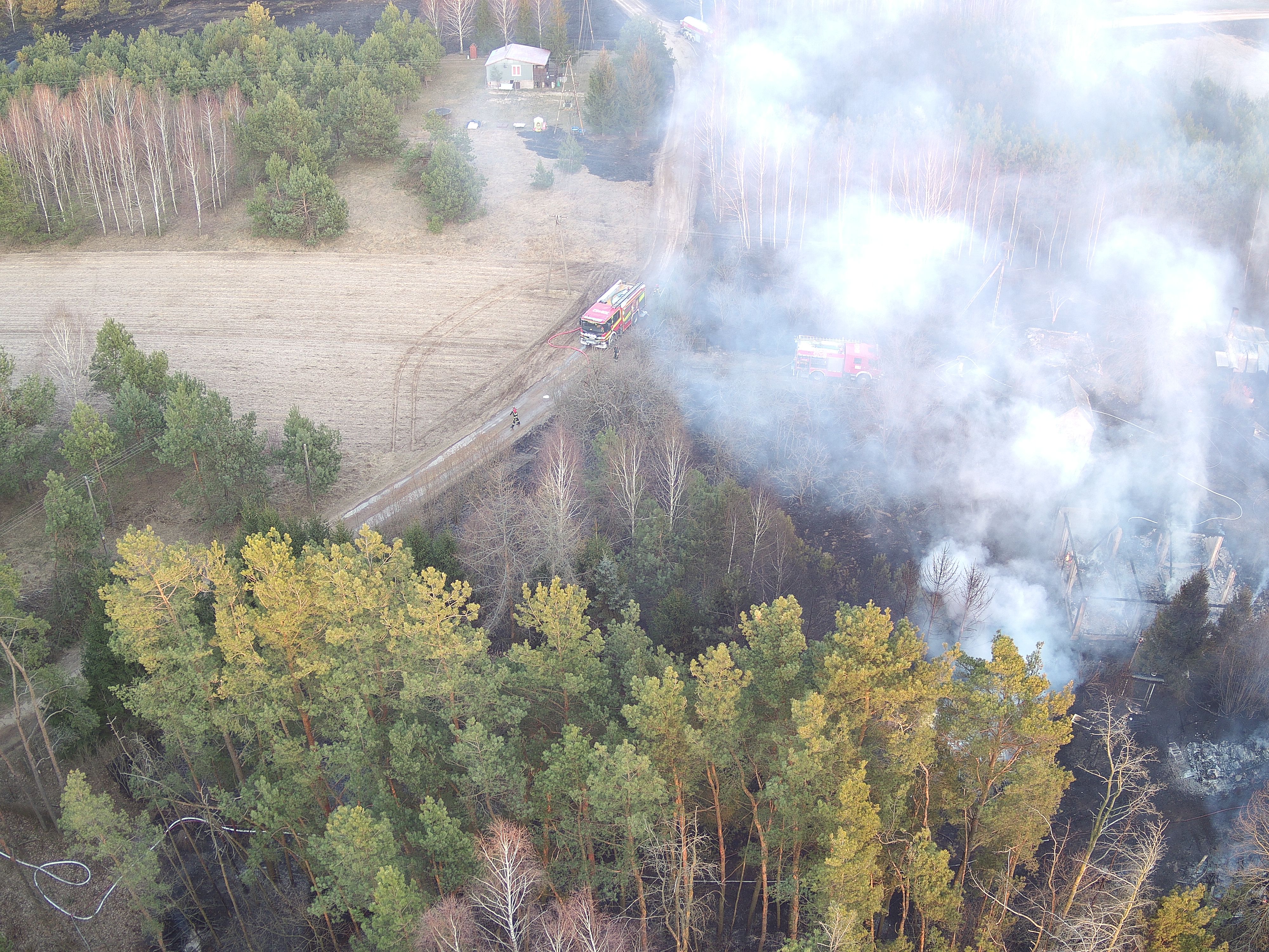 Pierwsze przybyłe zastępy potwierdziły zgłoszenie oraz poprosiły o zadysponowanie kolejnych sił i środków. Ogółem w działaniach brało udział 27 zastępów jednostek ochrony przeciwpożarowej, łącznie 98 strażaków. Współpracowano również ze służbą leśną, z której został zadysponowany samolot Dromader, który wykonał trzy zrzuty wody na front pożaru. Spaleniu uległo 13 obiektów budowlanych (budynki letniskowe i gospodarcze) oraz ok. 60 hektarów nieużytków rolnych i podszycia leśnego. Dozorowanie pogorzeliska trwało całą noc, a dogaszanie ukrytych zarzewi ognia trwało również w dniu 24 marca 2022 r.