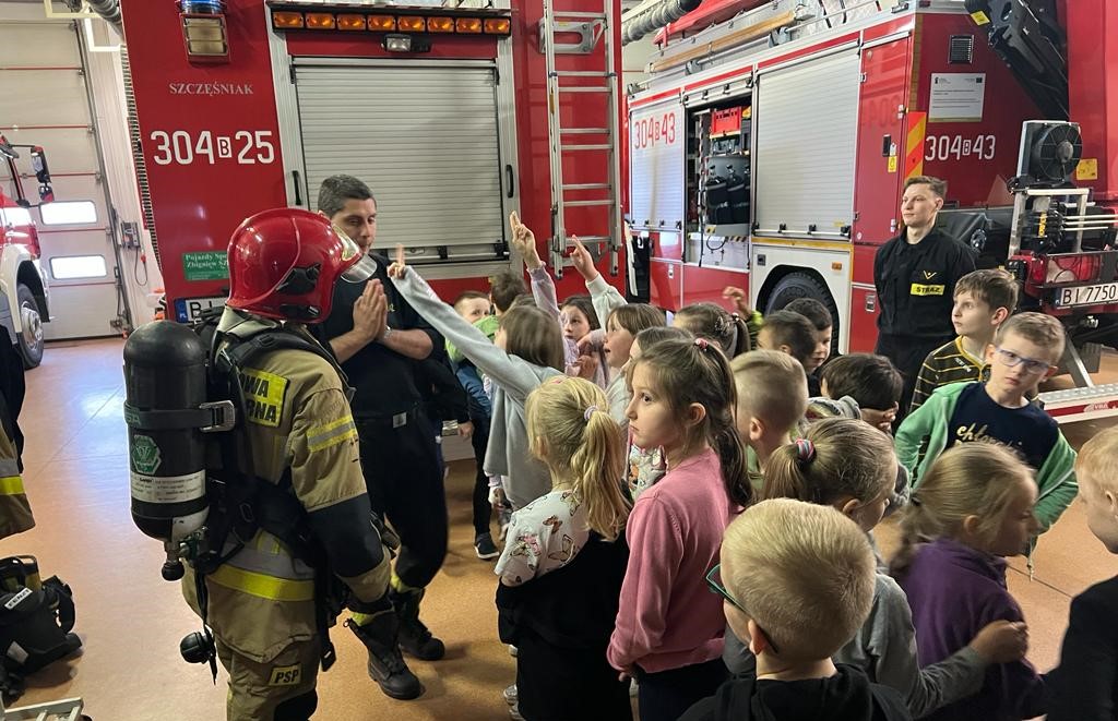 Z okazji Międzynarodowego Dnia Dziecka w Jednostce Ratowniczo – Gaśniczej nr 4 odbyło się spotkanie dzieci ze Szkoły Podstawowej nr 24 w Białymstoku ze strażakami. Podczas tego spotkania dzieci dowiedziały się ciekawostek dotyczących pracy strażaka oraz obejrzały z bliska sprzęt będący na wyposażeniu Jednostki. Na zajęciach dydaktycznych w sali edukacyjnej „Ognik” zapoznały się ze znakami ewakuacyjnymi, zasadami udzielania pierwszej pomocy oraz przećwiczyły to w praktyce.