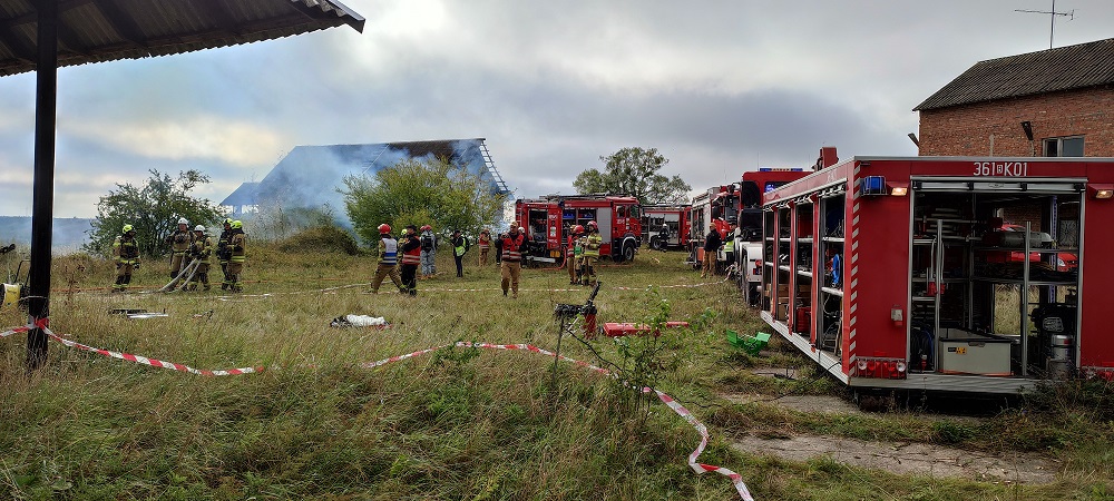 Kierujący Działaniami Ratowniczymi po przeprowadzeniu rozpoznania potwierdza informację o wybuchu i kilku osobach poszkodowanych oraz prosi wsparcie dodatkowymi siłami i środkami PSP z terenu województwa podlaskiego.