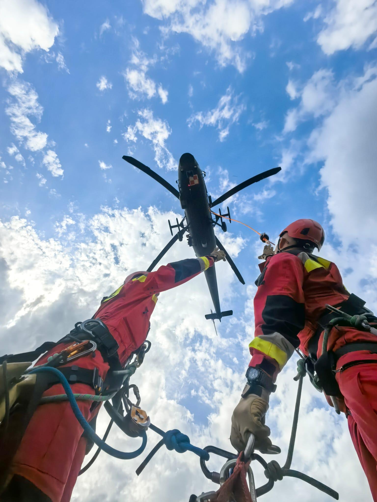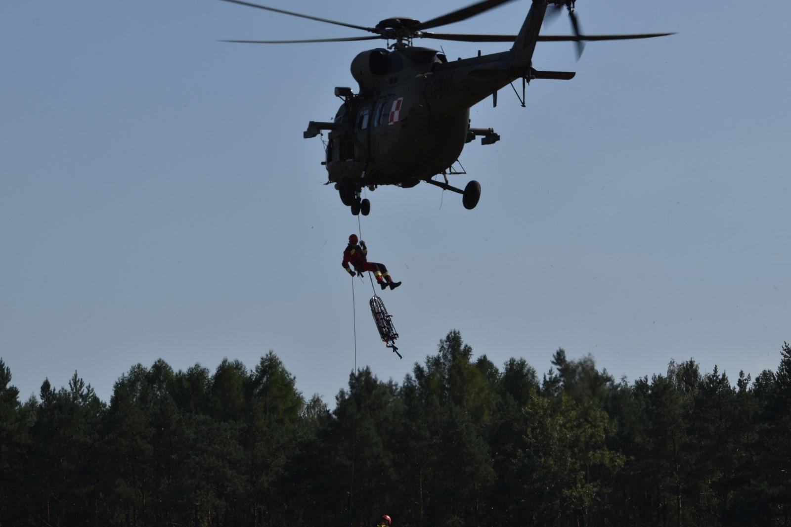 Strażacy szkolili się z wykorzystania technik linowych z pokładu śmigłowca. W tym przypadku był to PZL W-3 "Sokół" z zasobów Kawalerii. Podczas szkolenia realizowano obszerny program m. in.: desant na linie wspólnej i osobistej, ewakuacja na "długiej linie", desant ze sprzętem do celu, przyjmowanie śmigłowca "na siebie", poręczowanie śmigłowca, etc.