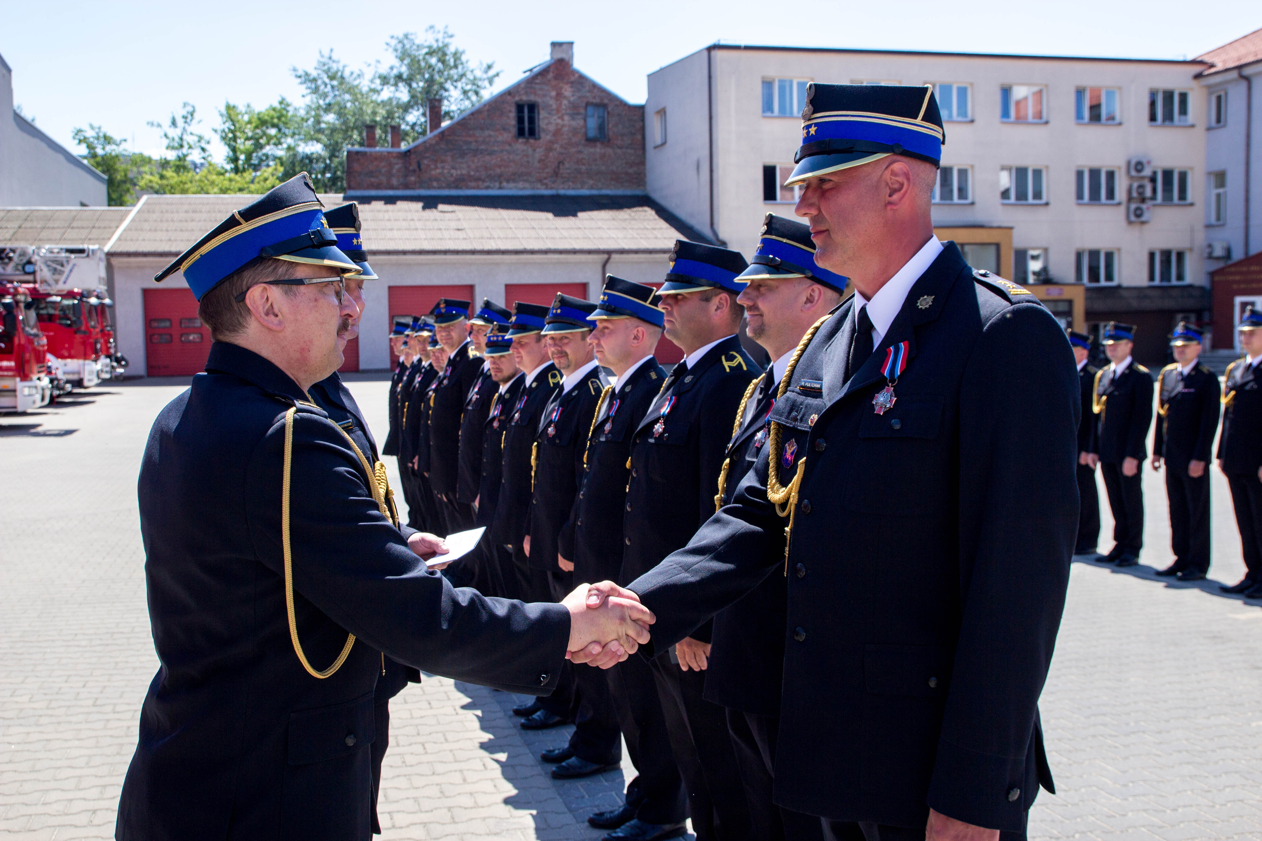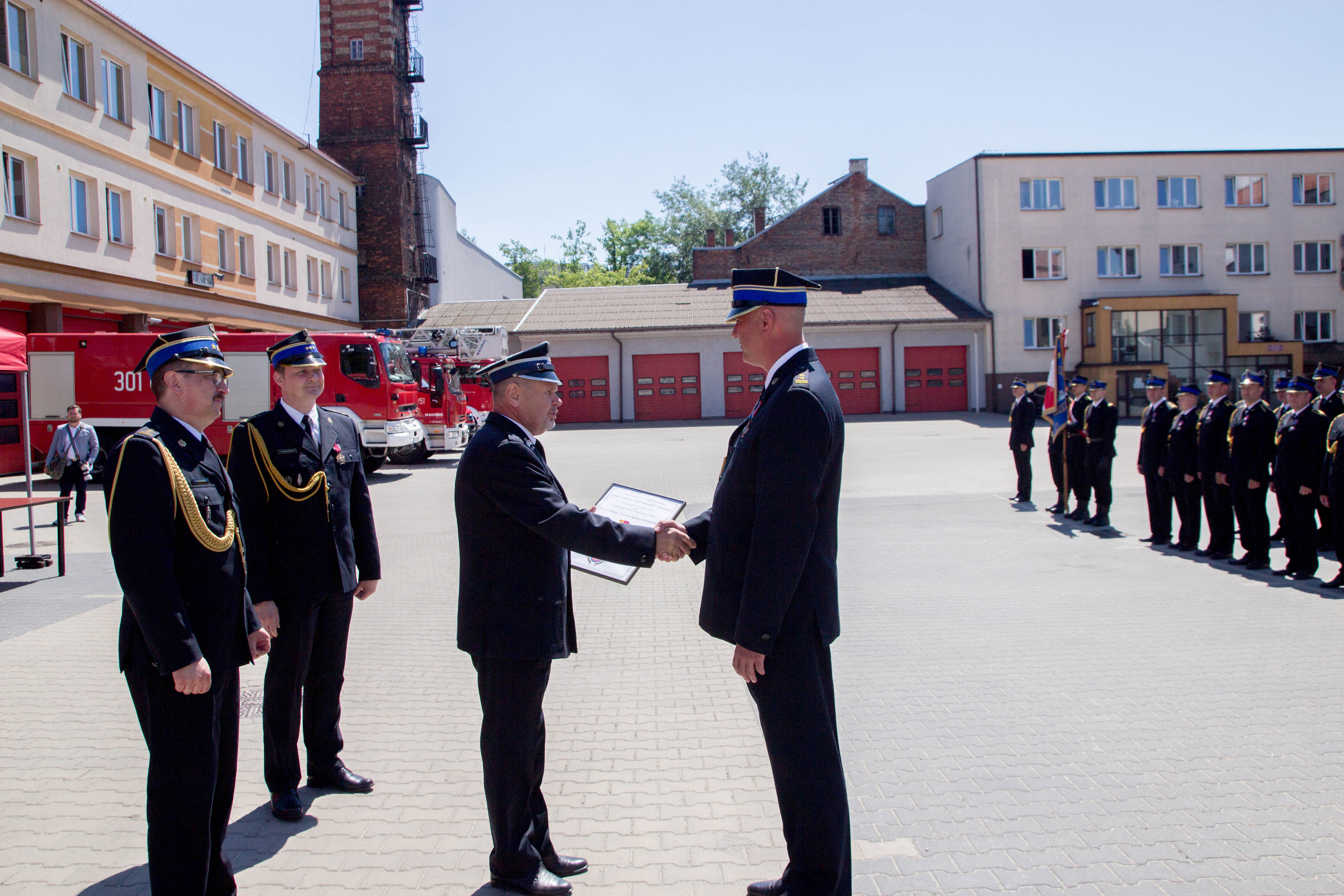 Następnie głos zabrał Zastępca Komendanta Miejskiego PSP w Białymstoku st. bryg. Tomasz Gierasimiuk, po czym nastąpiła główna część uroczystości, w trakcie której st. bryg. Robert Tadeusz Dzierżek – Zastępca Podlaskiego Komendanta Wojewódzkiego PSP oraz st. bryg. Tomasz Gierasimiuk, bryg. Radosław Pułtorak – Zastępcy Komendanta Miejskiego PSP w Białymstoku, dh Jan Gradkowski - Prezes Zarządu Oddziału Powiatowego Związku Ochotniczych Straży Pożarnych Rzeczypospolitej Polskiej wręczyli awanse, odznaczenia, wyróżnienia.