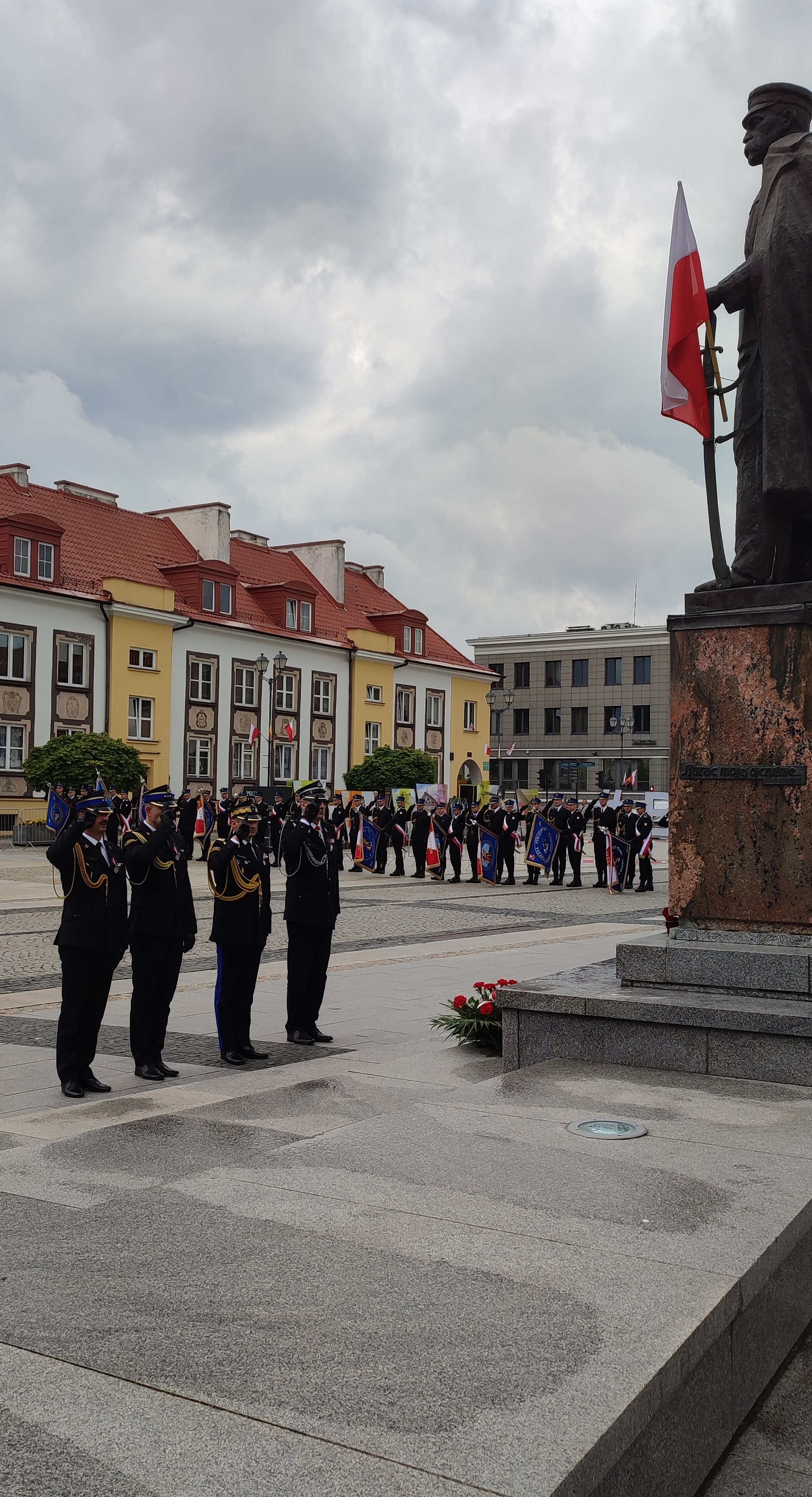 Podczas uroczystości głos zabrał nadbryg. dr inż. Adam Konieczny, który podziękował wszystkim strażakom za to co robią, za wypełnianie misji strażackiej w niesieniu pomocy oraz pogratulował wszystkim wyróżnionym i awansowanym. Następnie złożono wieniec pod pomnikiem Marszałka Józefa Piłsudskiego.