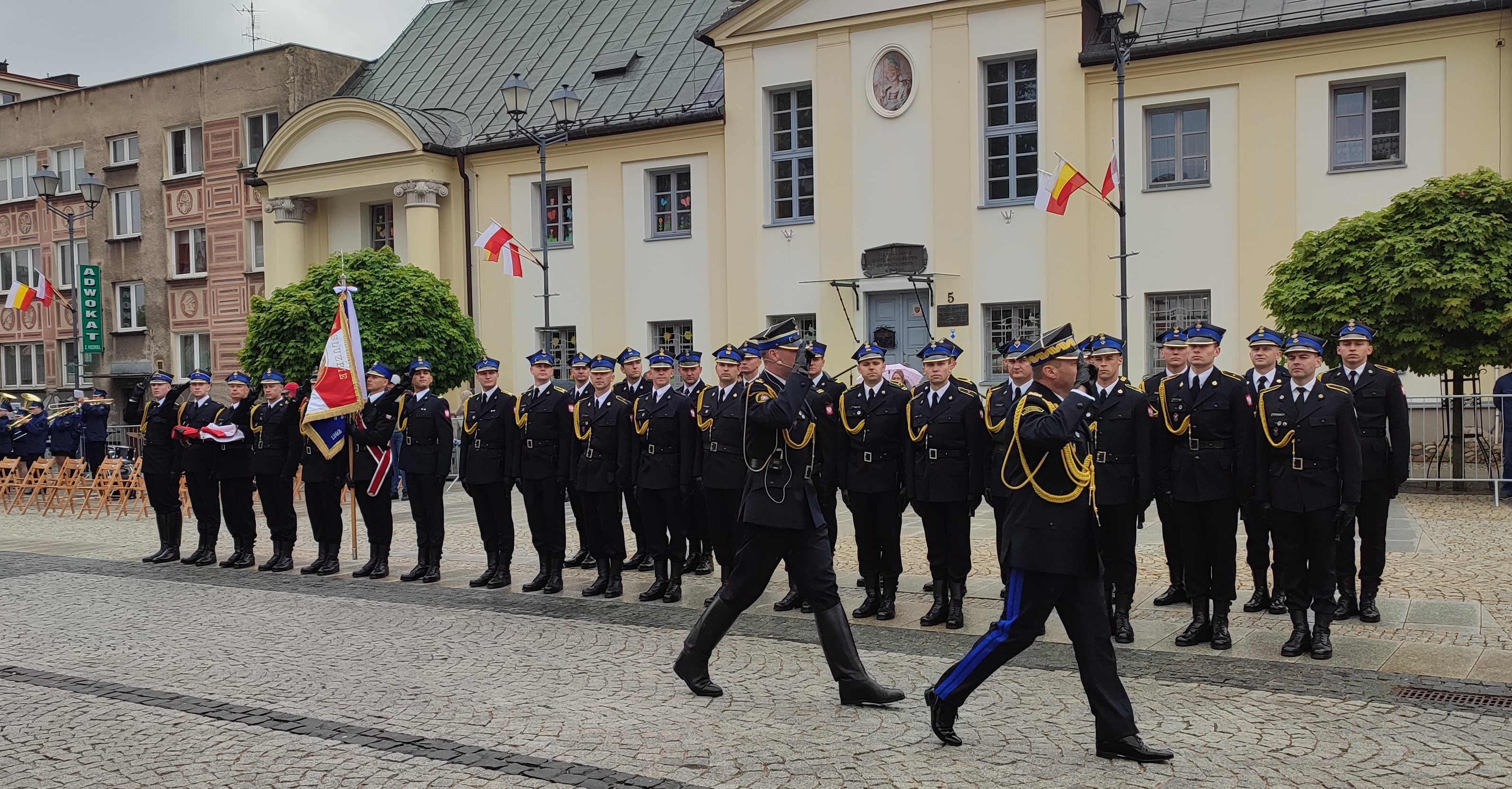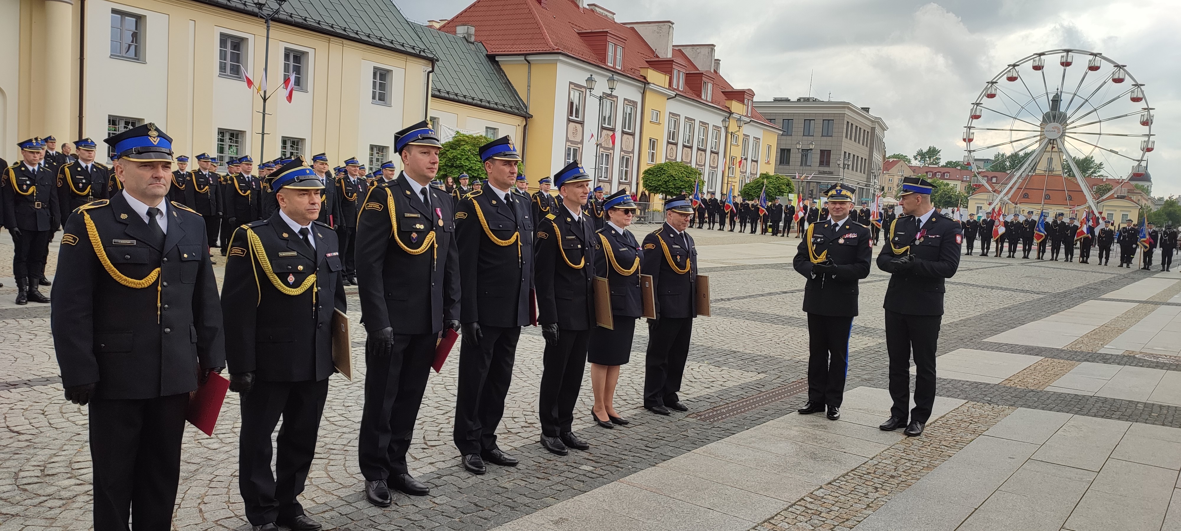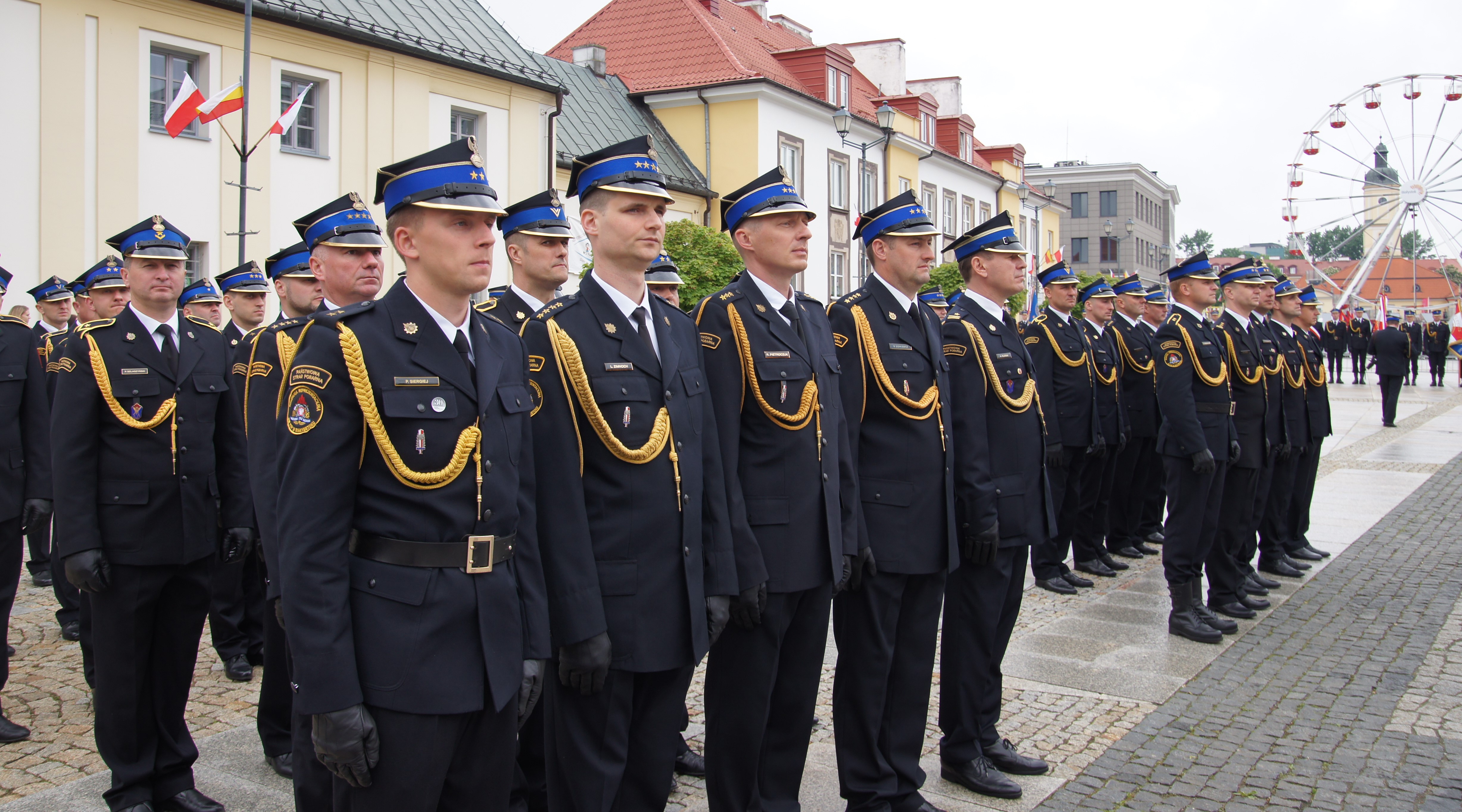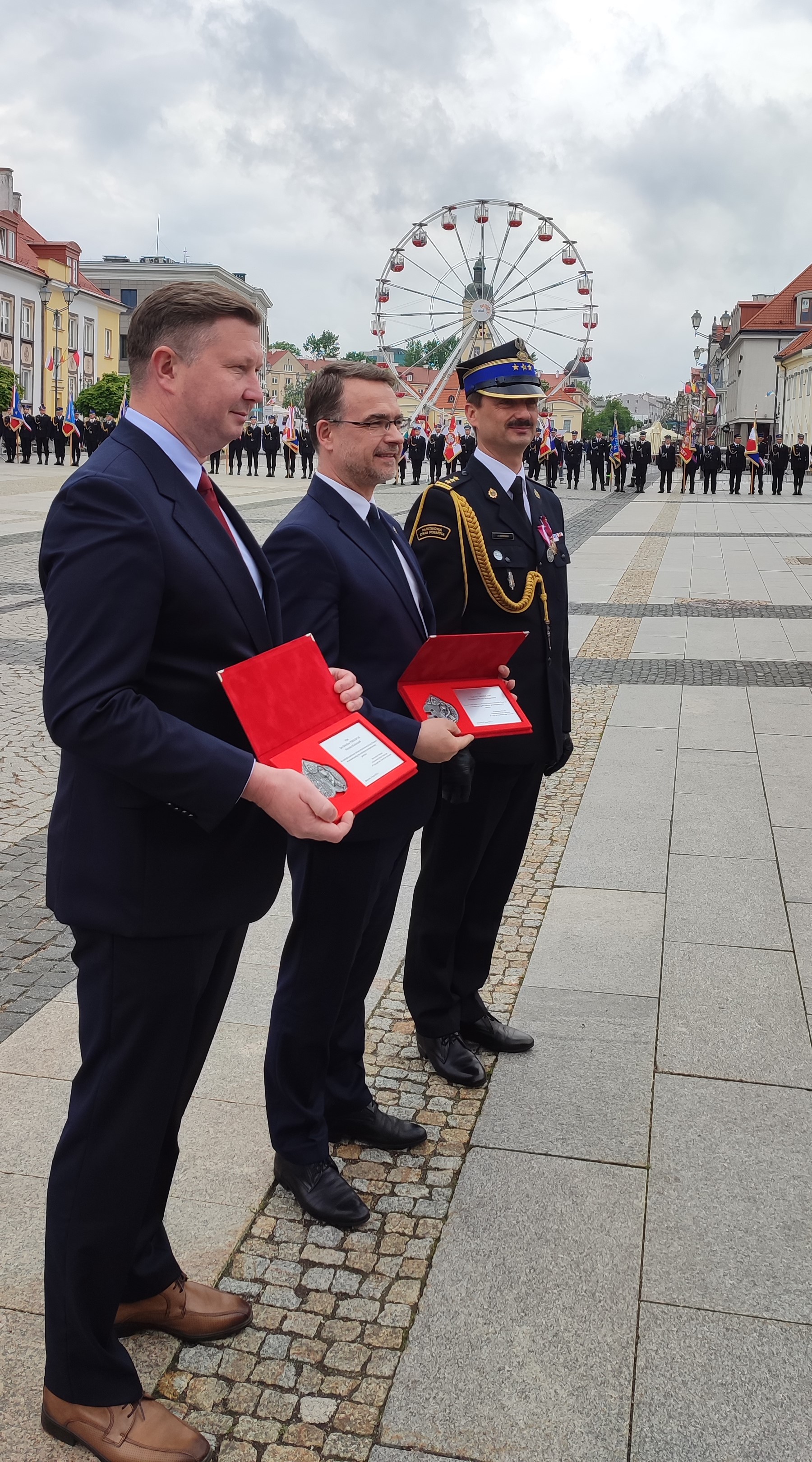 w Archikatedrze Białostockiej. Następnie dowódca uroczystości złożył meldunek zastępcy komendanta głównego PSP nadbryg. dr. inż. Adamowi Koniecznemu, który dokonał przeglądu i powitania pododdziałów.