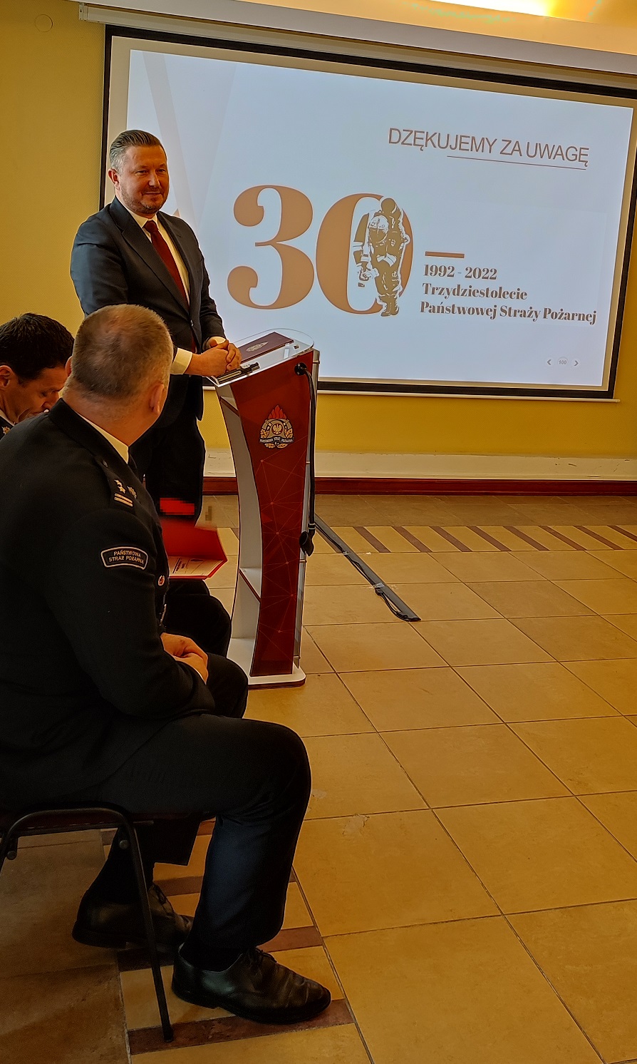 Zastępca Prezydenta Miasta Białegostoku, Starosta Powiatu Białostockiego i Prezes Zarządu Oddziału Powiatowego Związku OSP podziękowali za działalność funkcjonariuszy i pracowników cywilnych Komendy Miejskiej PSP w Białymstoku oraz życzyli spokojnej służby w 2023 roku, a także realizacji zamierzonych celów, jakim jest m.in. budowa nowej Jednostki Ratowniczo-Gaśniczej przy ul. Plażowej w Białymstoku.