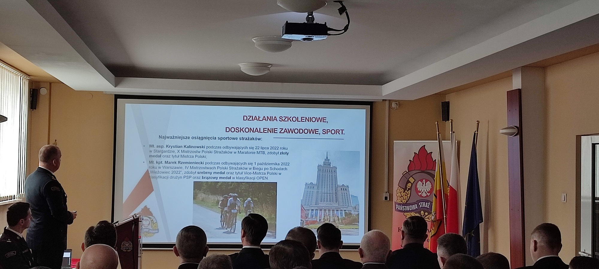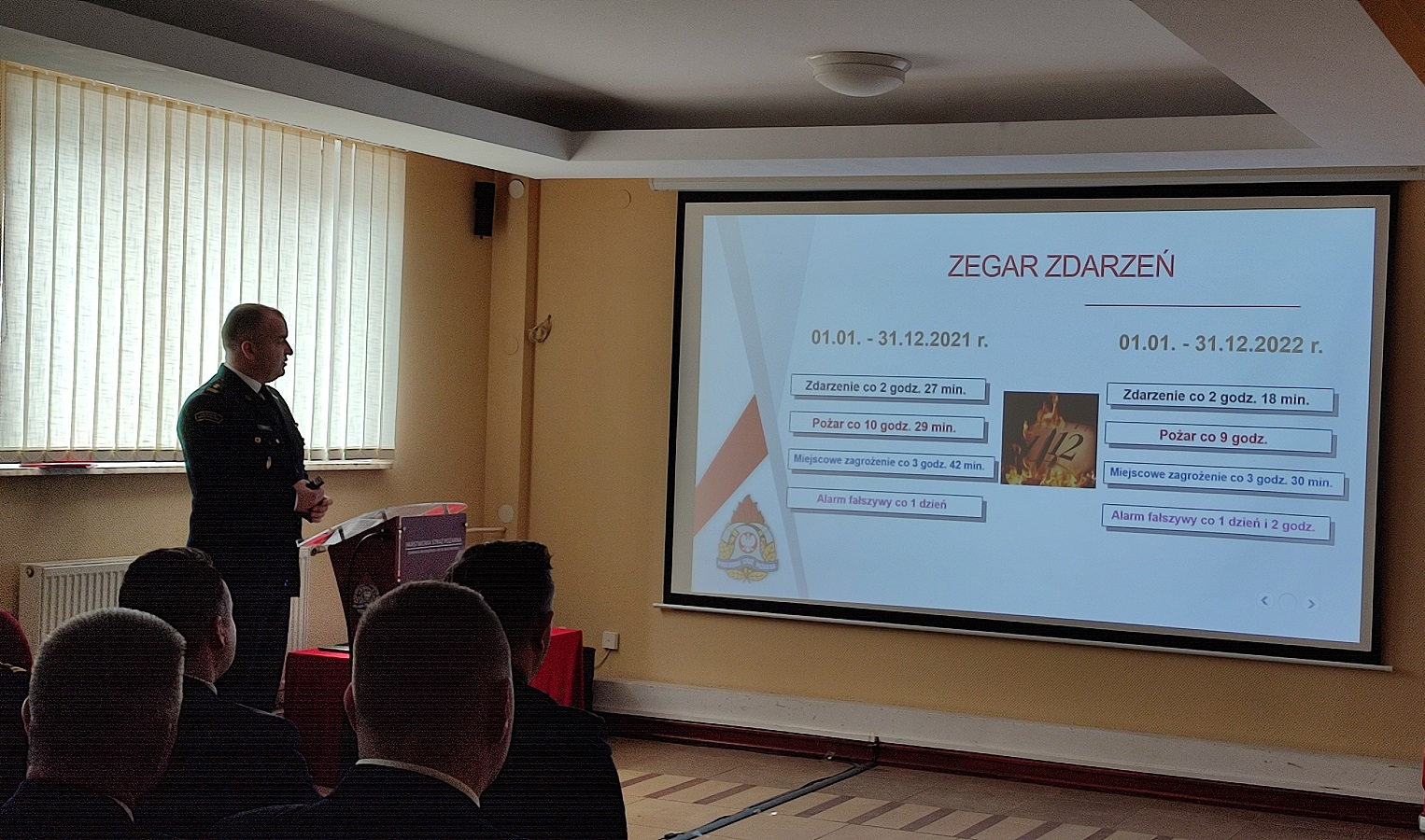 Narada rozpoczęła się złożeniem meldunku przez Dowódcę uroczystości st. kpt. Piotra Bartnickiego dla Zastępcy Podlaskiego Komendanta Wojewódzkiego PSP st. bryg. Pawła Ostrowskiego. Następnie Komendant Miejski PSP w Białymstoku bryg. Wojciech Łapiński powitał zgromadzonych na sali gości oraz przedstawił krótkie podsumowanie działalności Komendy Miejskiej PSP w 2022 roku. Podziękował również wszystkim funkcjonariuszom za pełnioną w ubiegłym roku służbę, która okazała się bardzo trudna, w związku z sytuacją panującą za wschodnią granicą Polski. Następnie Komendant Miejski wraz ze swoim Zastępcą bryg. Tomaszem Biryckim omówili działalność wszystkich Wydziałów oraz Jednostek Ratowniczo-Gaśniczych w 2022 roku.