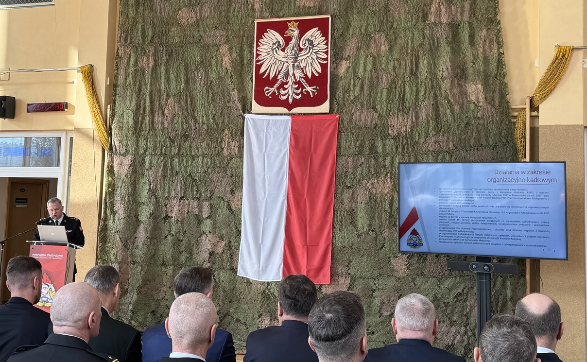 9 lutego 2026 roku w Jednostce Ratowniczo-Gaśniczej nr 2 Komendy Miejskiej PSP w Białymstoku odbyła się odprawa roczna podsumowująca działalności jednostek ochrony przeciwpożarowej powiatu białostockiego w 2025 roku.