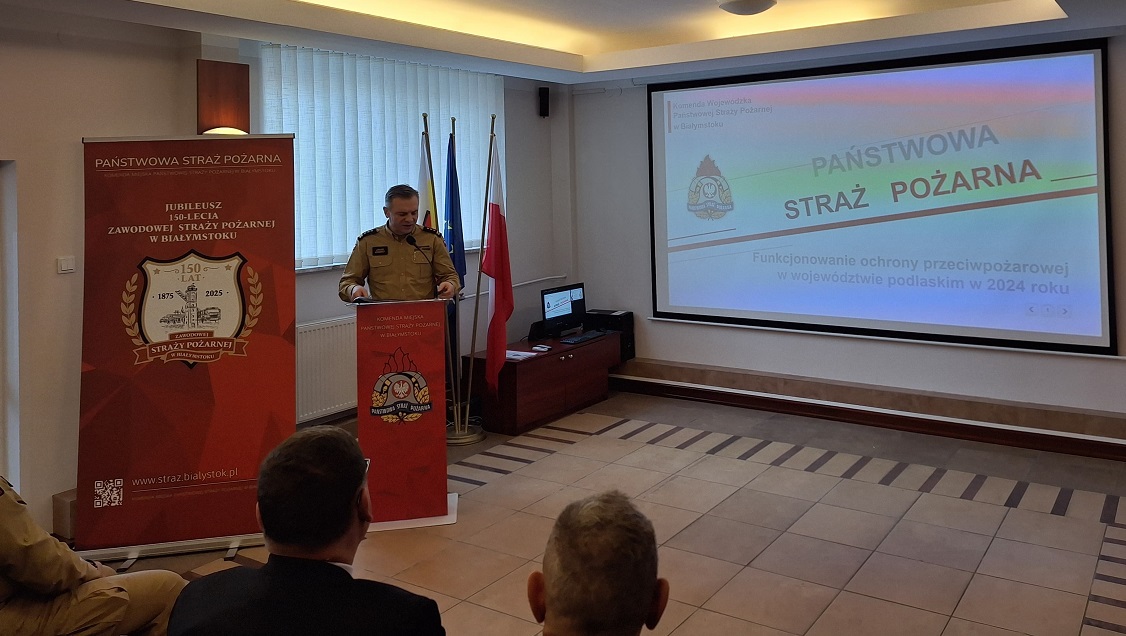18 lutego 2025 roku w siedzibie Komendy Miejskiej PSP w Białymstoku odbyła się odprawa roczna podsumowująca działalność jednostek ochrony przeciwpożarowej powiatu białostockiego w 2024 roku.