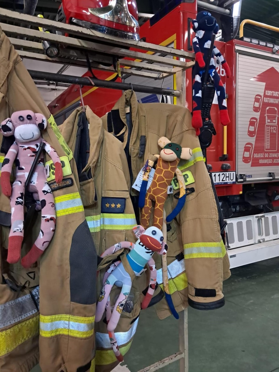 W dniu 19 grudnia 2024 roku fundacja Dr Clown odwiedziła Jednostkę Ratowniczo-Gaśniczą nr 2 w Białymstoku, przekazując 35 maskotek, małpek skarpetkowych wykonanych ręcznie. Są one pomocne, aby dzieci uczestniczące w zdarzeniu mogły w jakimś stopniu odciągnąć swoją uwagę od traumatycznego dla nich przeżycia. Jest to rodzaj wsparcia psychicznego prowadzonego przez strażaków na terenie działań.