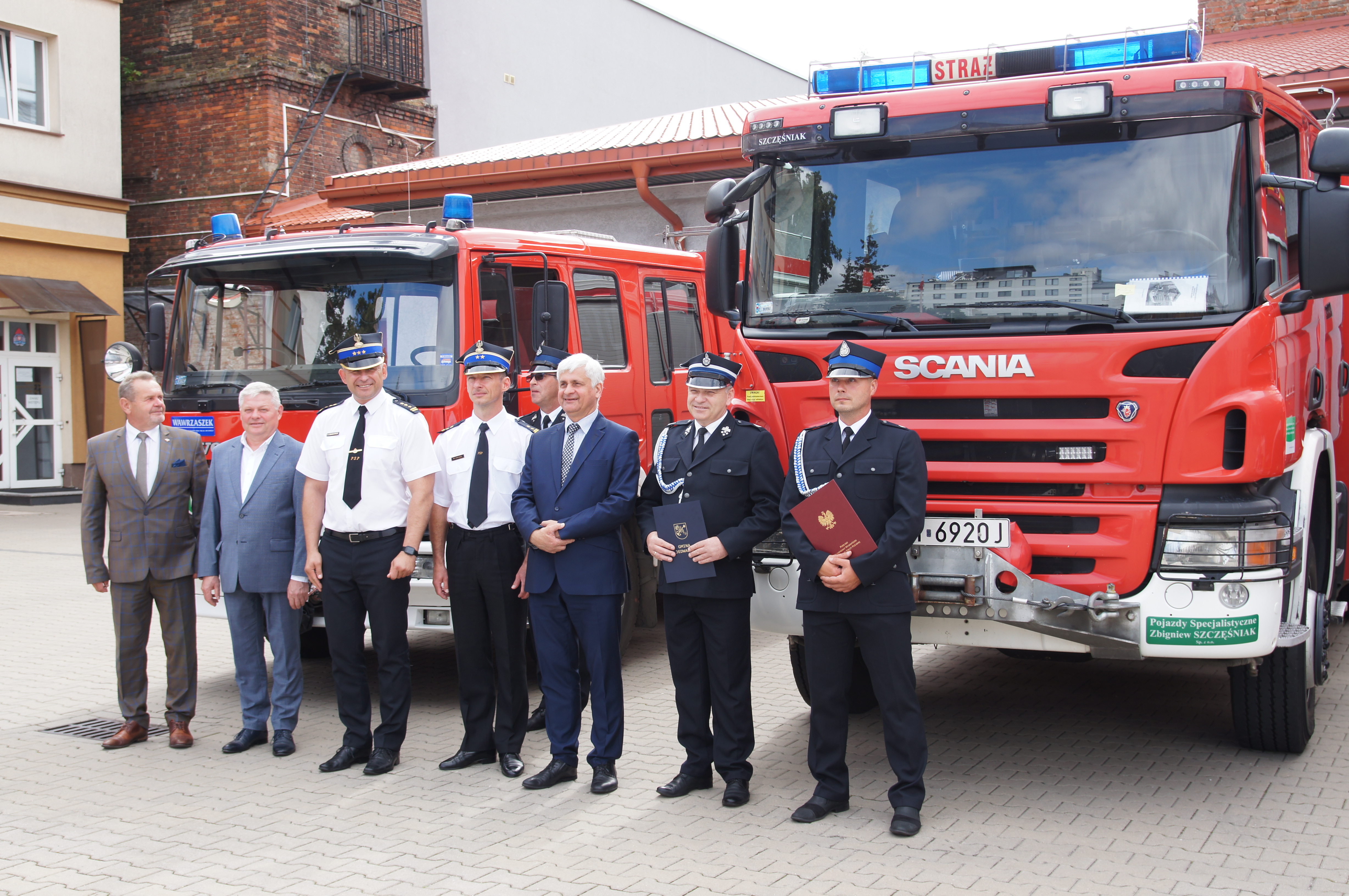 Podczas uroczystości dokonano również przekazania ciężkiego samochodu ratowniczo-gaśniczego GCBA 5/32 zabudowanego na podwoziu Scania do Ochotniczej Straży Pożarnej w Jedwabnem. Natomiast do OSP w Miastkowie przekazano średni samochód ratowniczo-gaśniczy specjalny GBA-Rt 2/30 marki VOLVO.