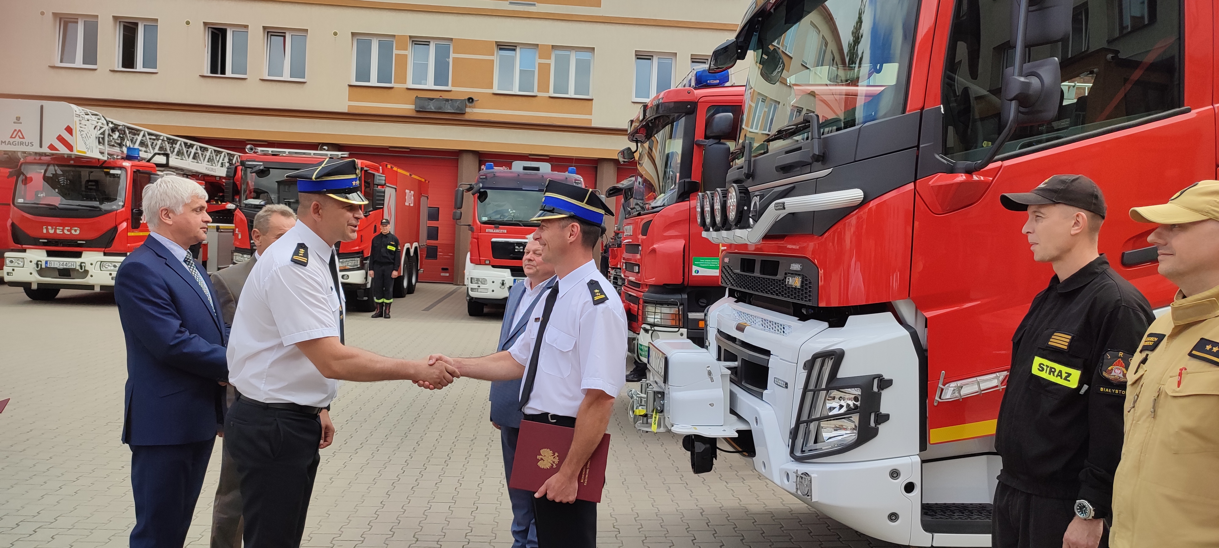 W dniu 25 lipca 2022 r. na terenie Komendy Miejskiej PSP w Białymstoku odbyła się uroczystość związana z przekazaniem pojazdów ratowniczo-gaśniczych.