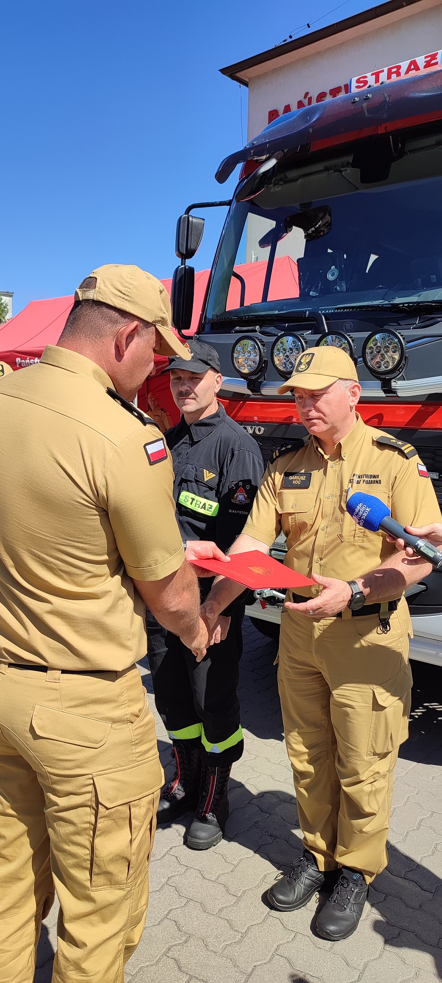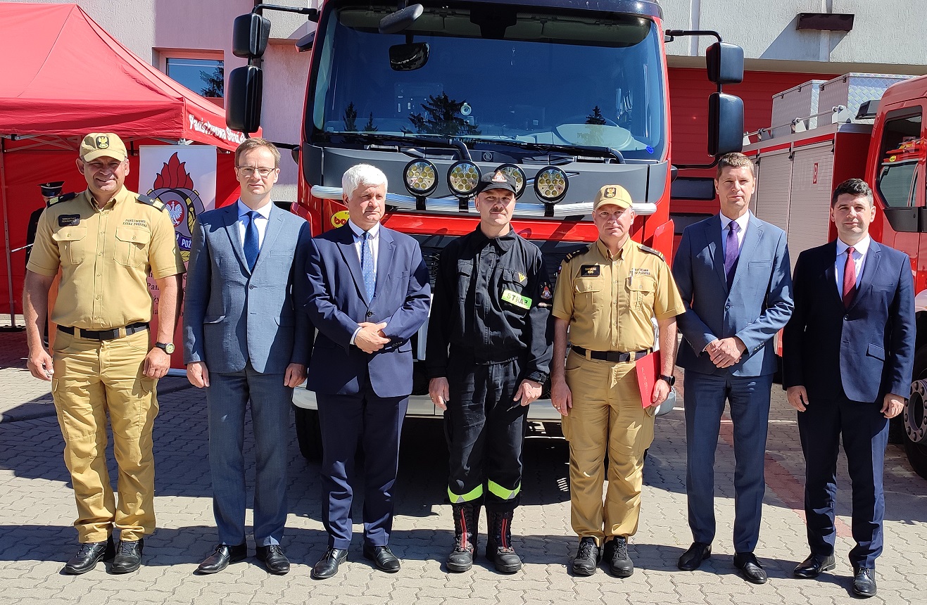 Dodatkowo podczas uroczystości dokonano przekazania średniego samochodu ratowniczo-gaśniczego GBA 2,6/24 VOLVO do Ochotniczej Straży Pożarnej w Rzędzianach.