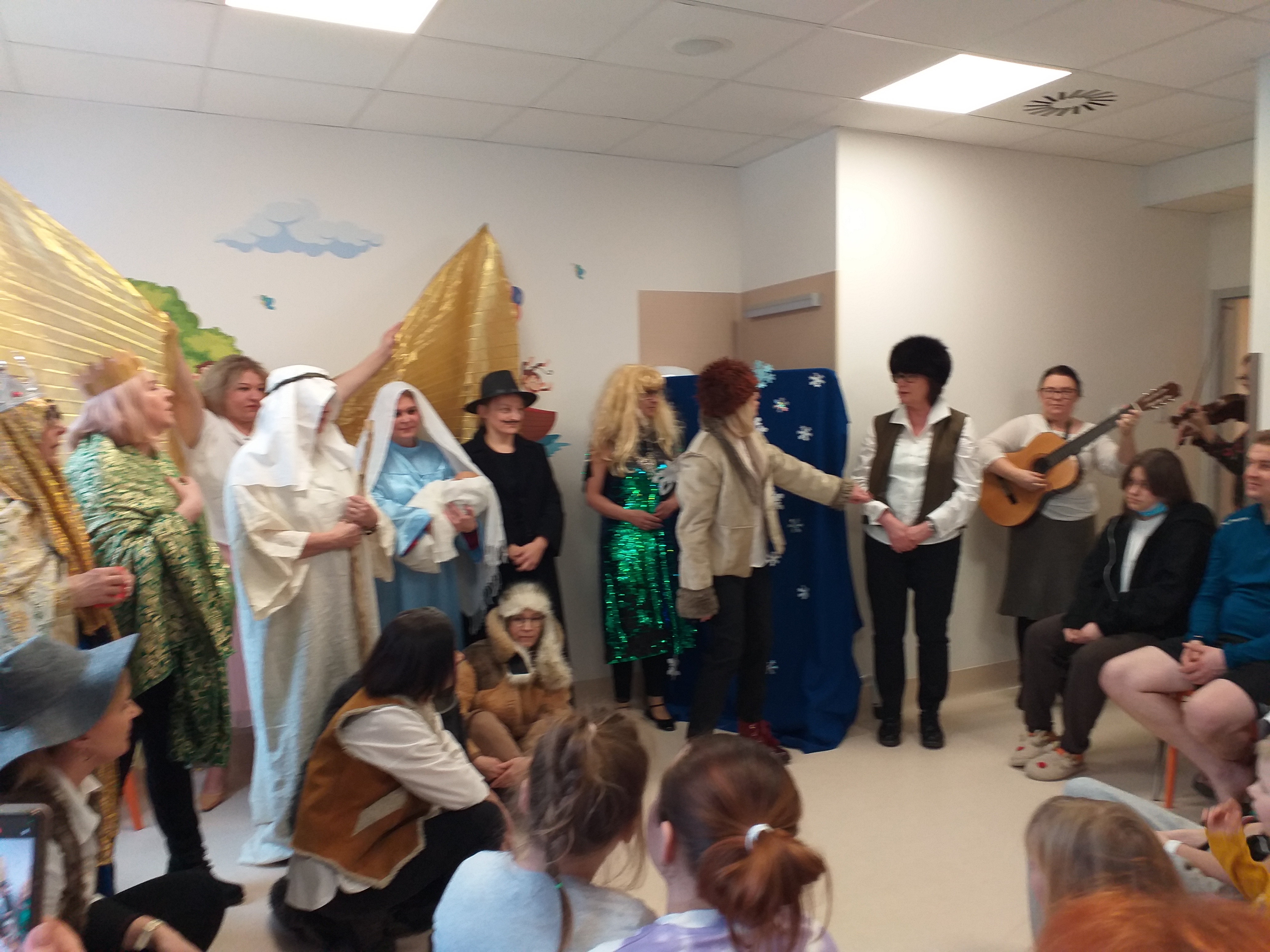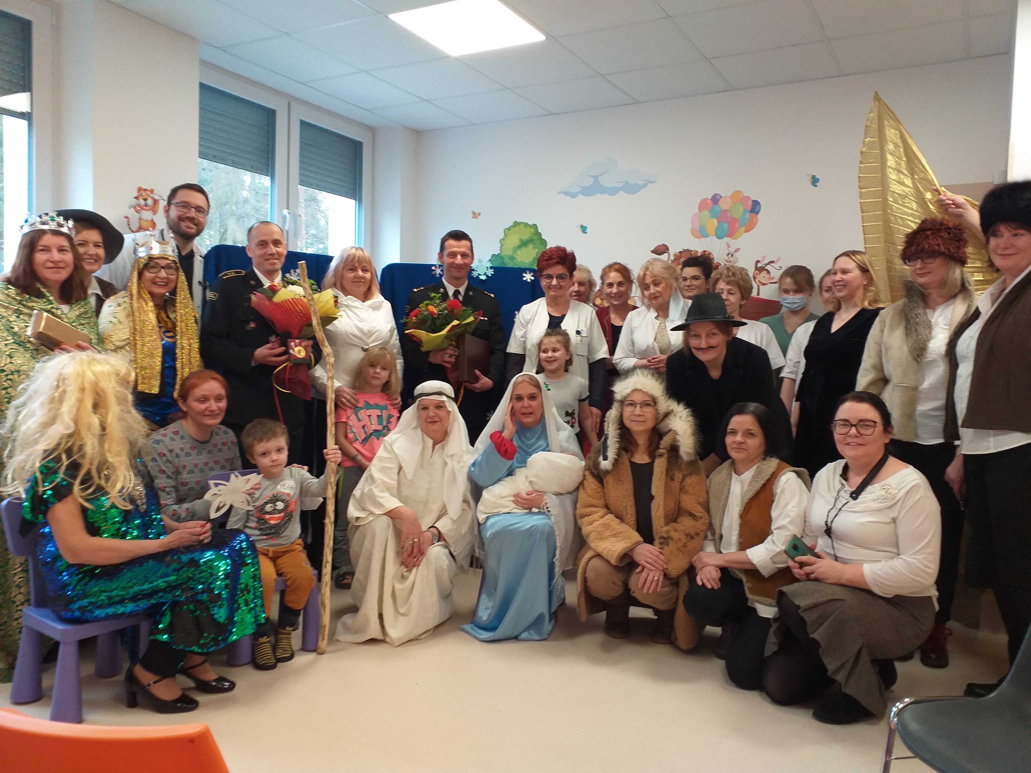 Podczas spotkania zaprezentowano przedstawienie artystyczne o tematyce świątecznej, a także na ręce Komendanta zostało złożone podziękowanie za współpracę i przychylność wobec działań dydaktyczno-wychowawczych realizowanych w przyszpitalnej szkole.