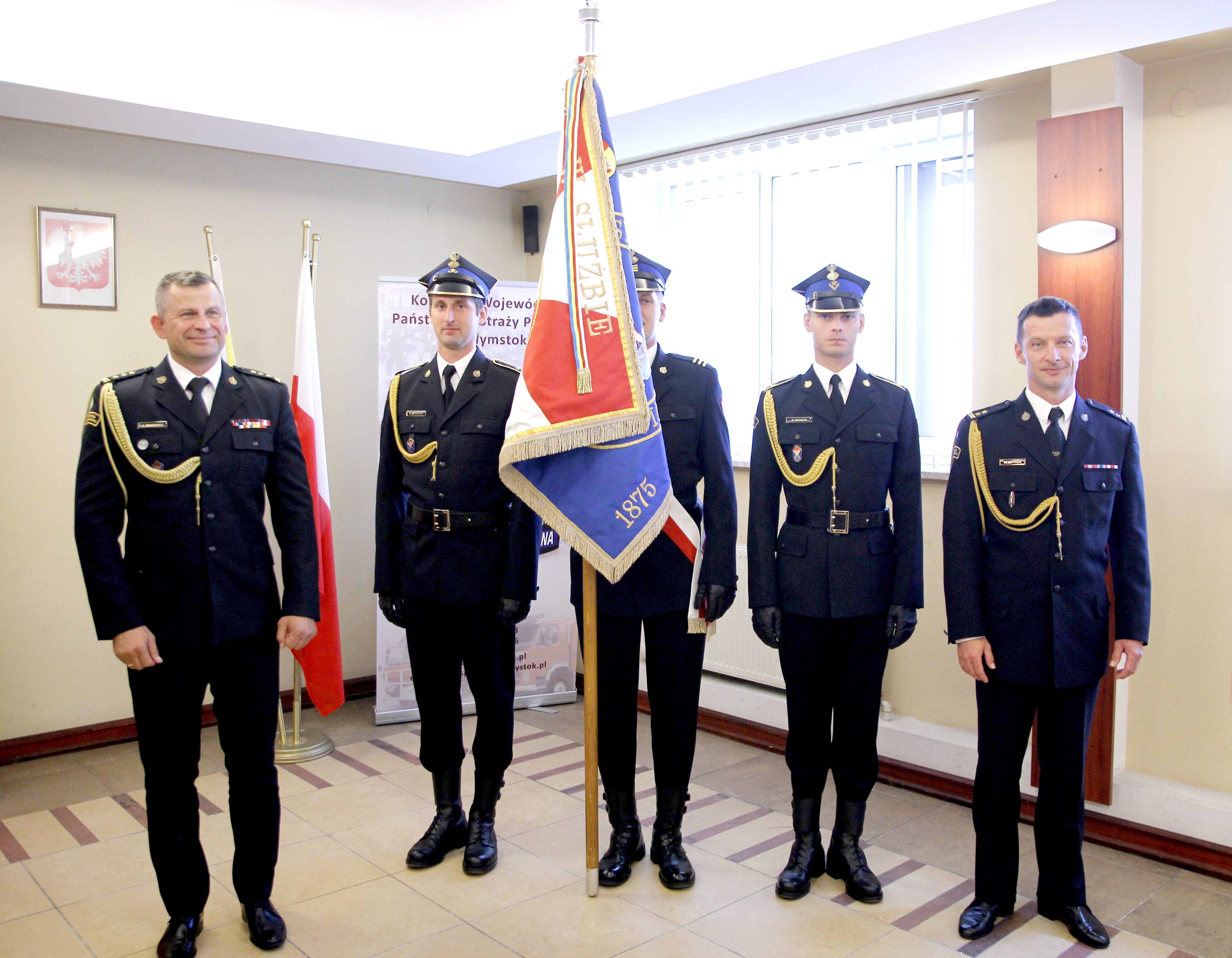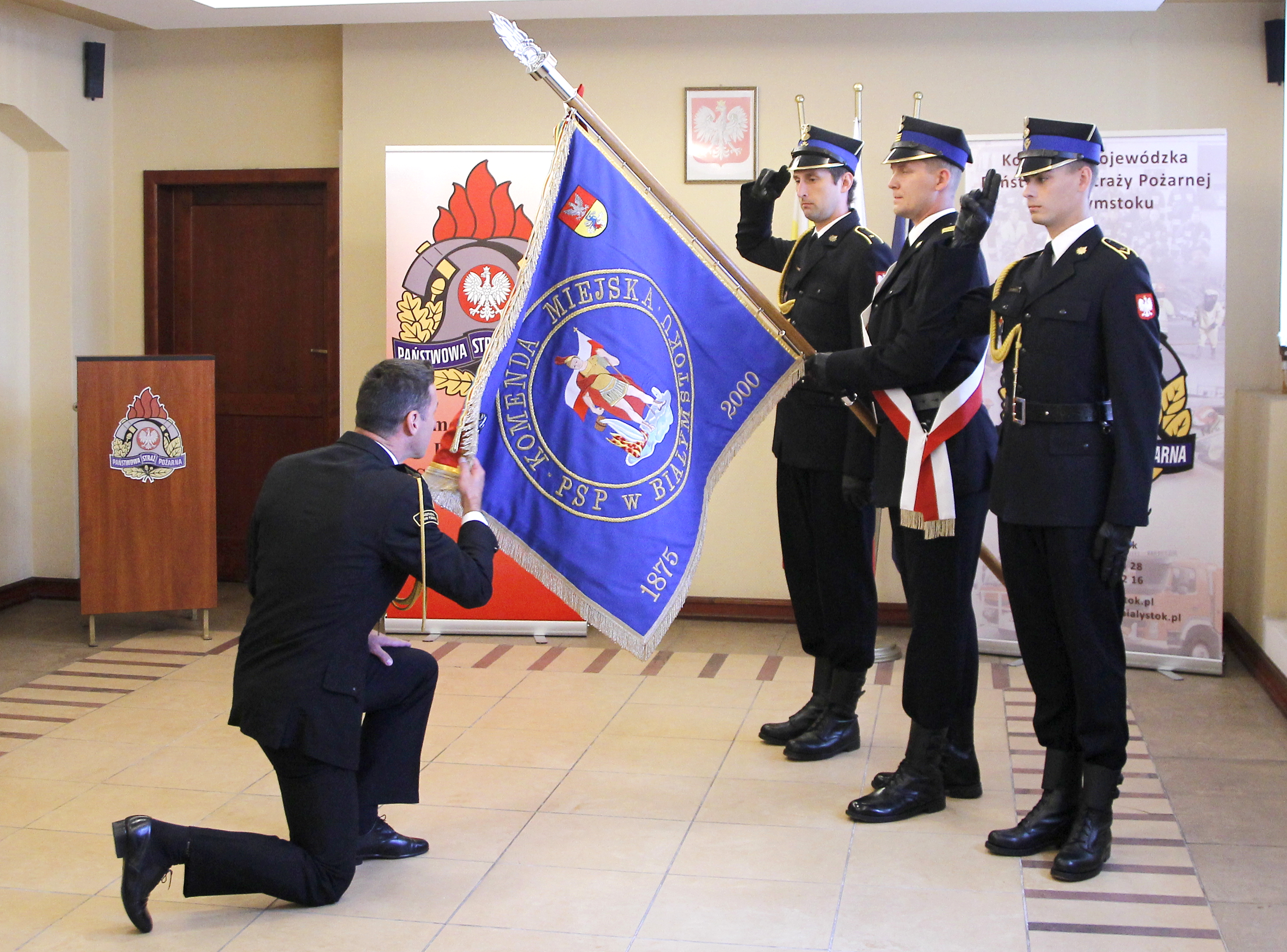 Podczas uroczystej zbiórki, która odbyła się w sali narad Komendy Miejskiej PSP w Białymstoku, powołany na stanowisko Komendant Miejski PSP przywitał się ze sztandarem, a następnie zameldował Podlaskiemu Komendantowi Wojewódzkiemu PSP przyjęcie obowiązków.