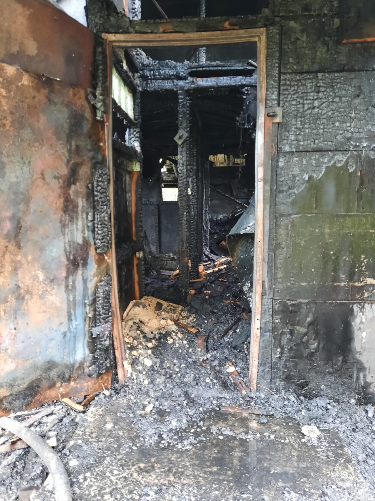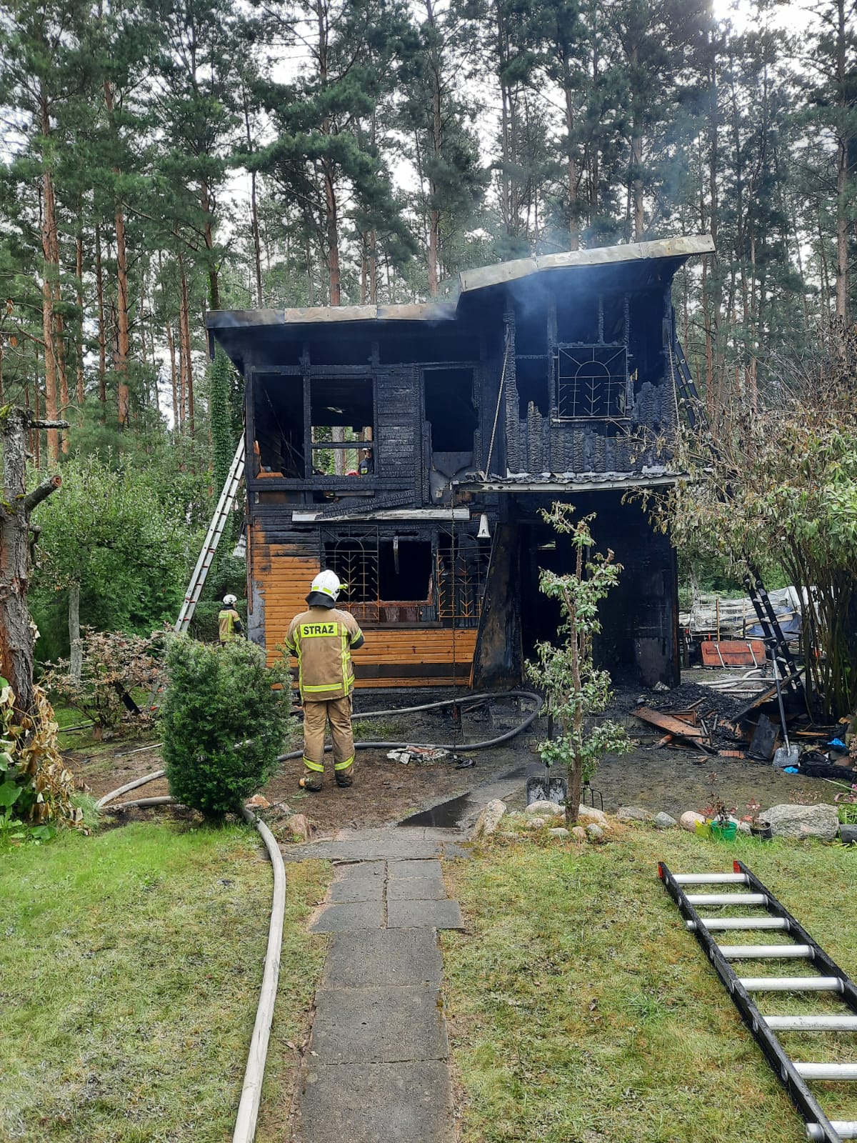 Po przybyciu pod wskazany w zgłoszeniu adres, strażacy zastali całkowicie objętą ogniem, dwukondygnacyjną, drewnianą altanę oraz bezpośrednio zagrożony budynek gospodarczy. Właścicielka ewakuowała się z płonącego obiektu samodzielnie, jeszcze przed przybyciem pierwszych zastępów Straży Pożarnej i nie zgłaszała żadnych dolegliwości związanych