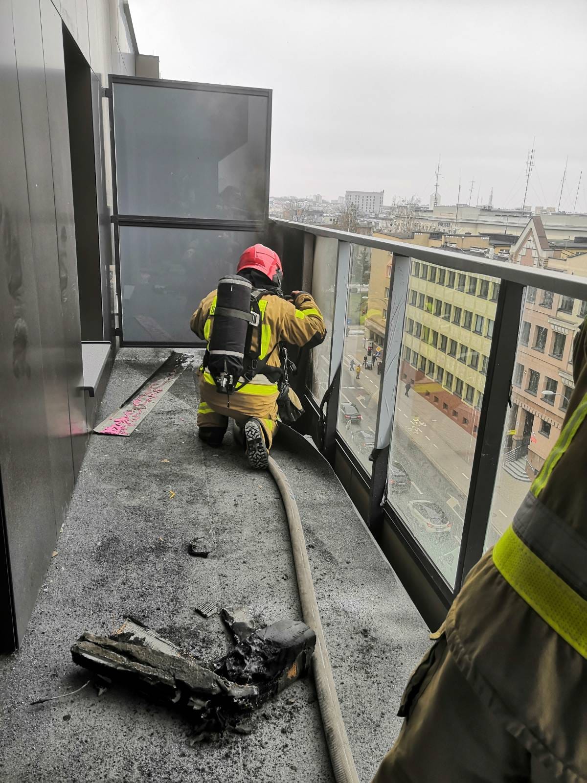 Podczas dojazdu na miejsce zdarzenia widoczne były kłęby czarnego dymu. Spaleniu uległa część elewacji oraz konstrukcji balkonu na piętrze szóstym. Próby gaszenia podjęte przez pracowników przyczyniły się do ograniczenia rozwoju pożaru. Przy użyciu drabiny mechanicznej, ratownicy usunęli nadpalone elementy balkonu oraz przeszklenia, co pozwoliło na ugaszenie palącego się styropianu pod posadzką balkonu. Przed zakończeniem działań obiekt sprawdzono kamerą termowizyjną w celu wykluczenia zagrożenia.