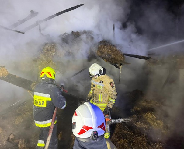 Pożar budynku inwentarskiego